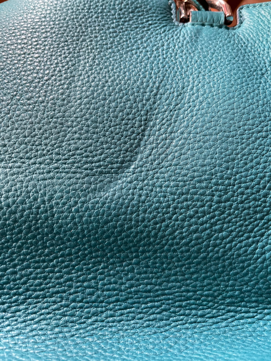 Fair: Very prominent wear, may have holes on corners, severe scuffs, piping of bag showing and pen marks to exterior. Interior may have pen or make up marks.