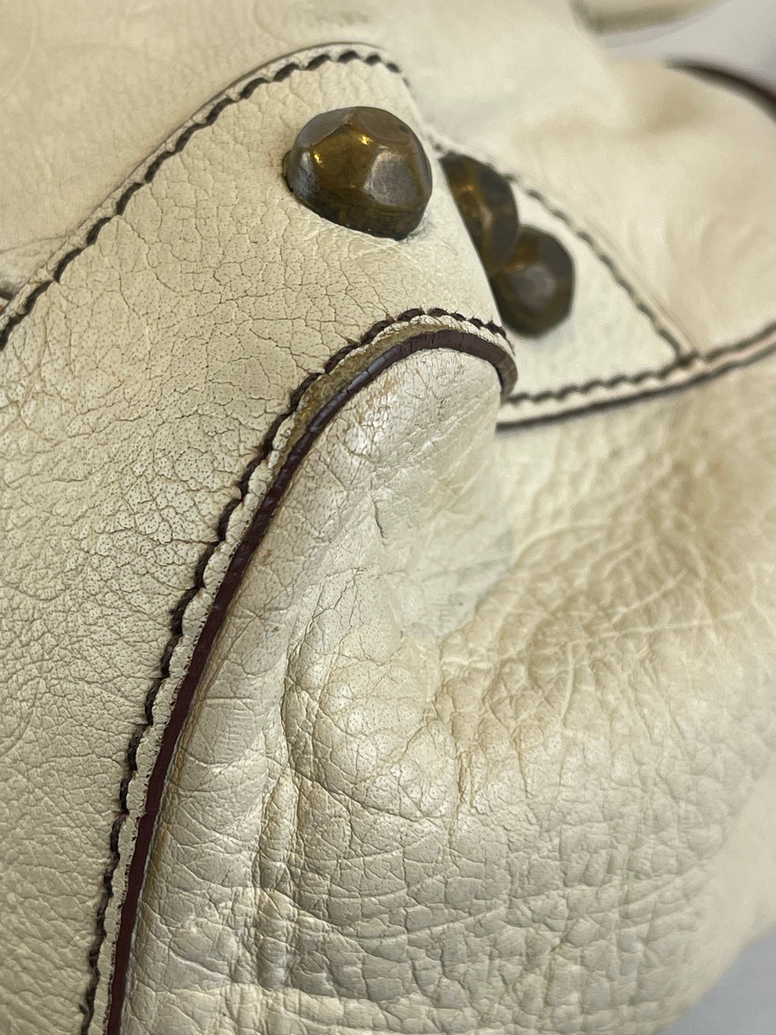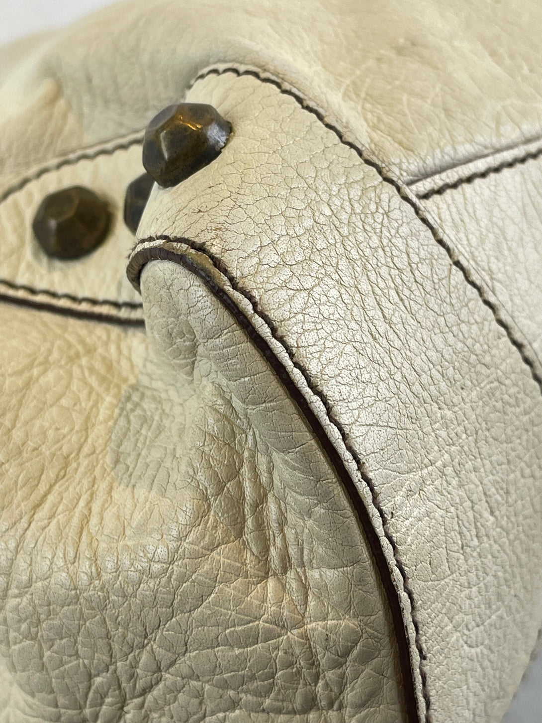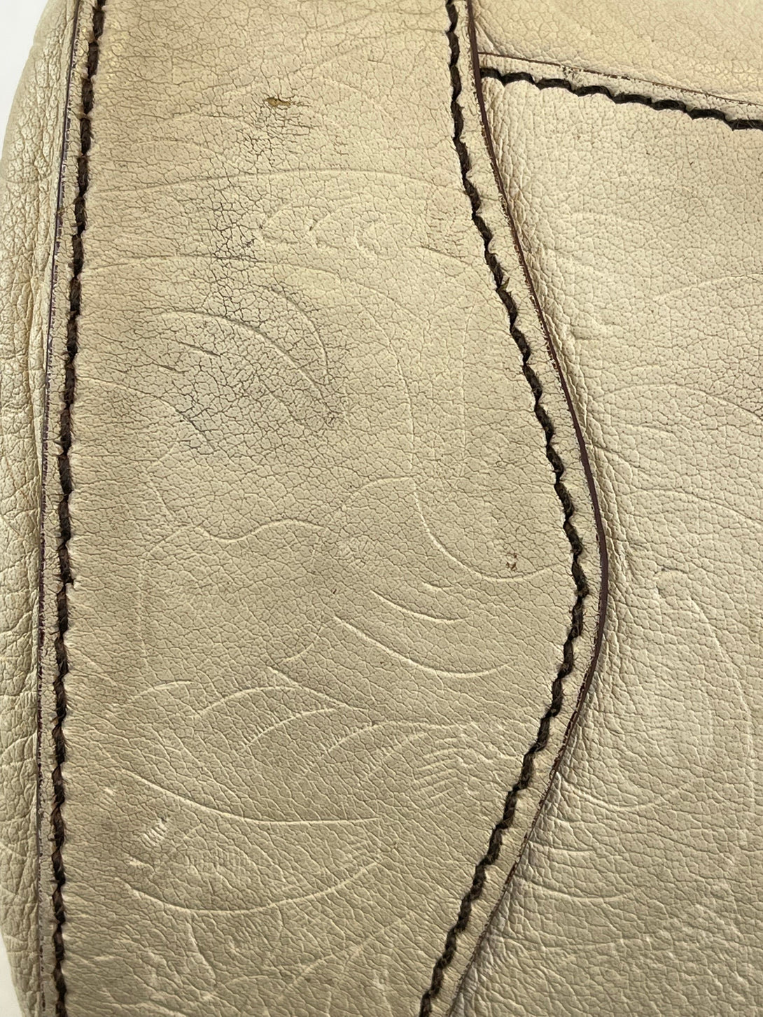 Good: Items show more prominent wear such as noticeable discoloration, stains and snags to fabric. May have worn corners and handles, tarnishing to hardware and creasing to leather. Pen or make up marks may be visible in the interior of the bag.