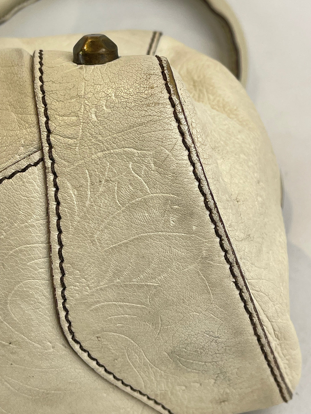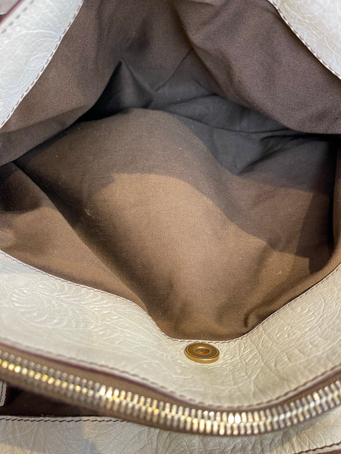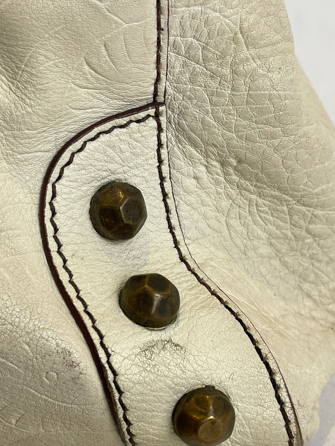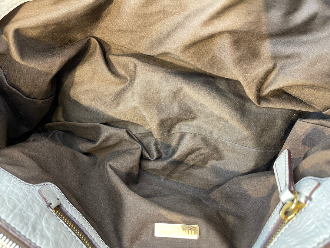 Good: Items show more prominent wear such as noticeable discoloration, stains and snags to fabric. May have worn corners and handles, tarnishing to hardware and creasing to leather. Pen or make up marks may be visible in the interior of the bag.