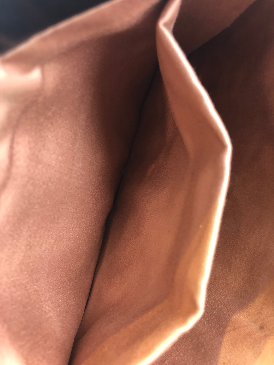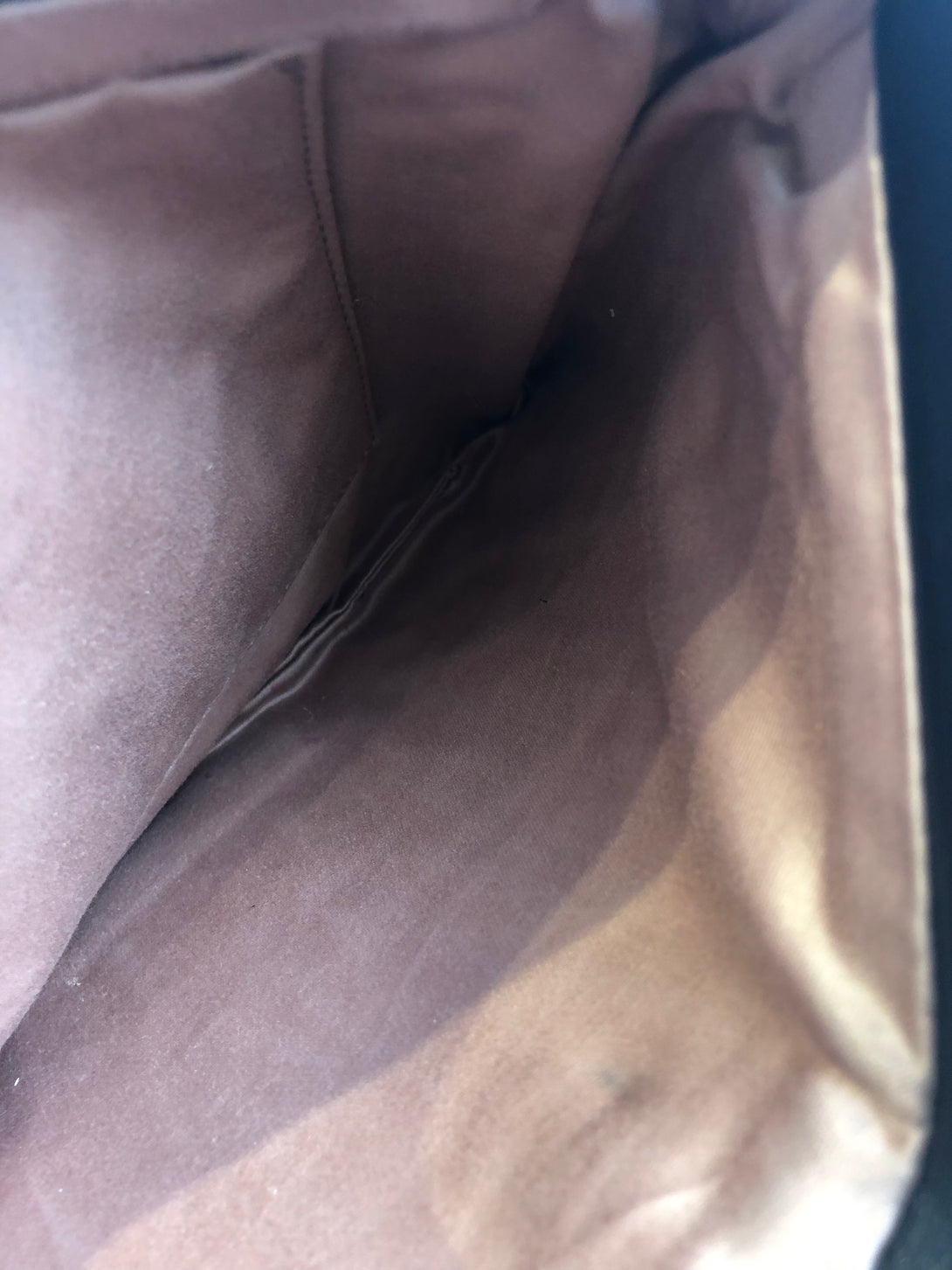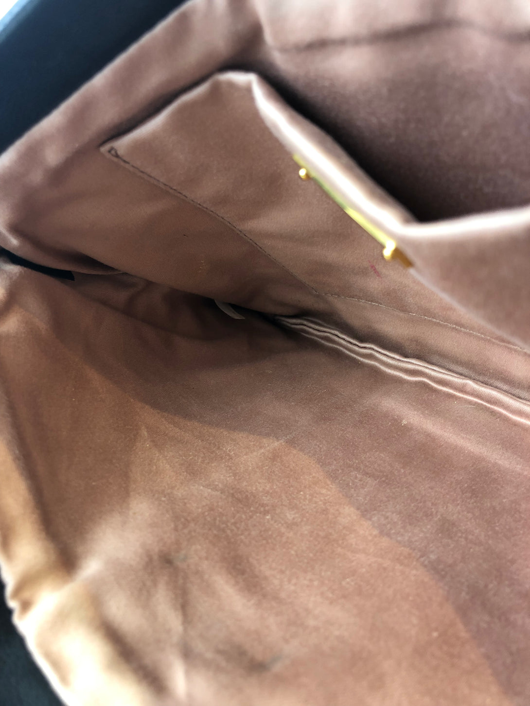 Good: Items show more prominent wear such as noticeable discoloration, stains and snags to fabric. May have worn corners and handles, tarnishing to hardware and creasing to leather. Pen or make up marks may be visible in the interior of the bag.