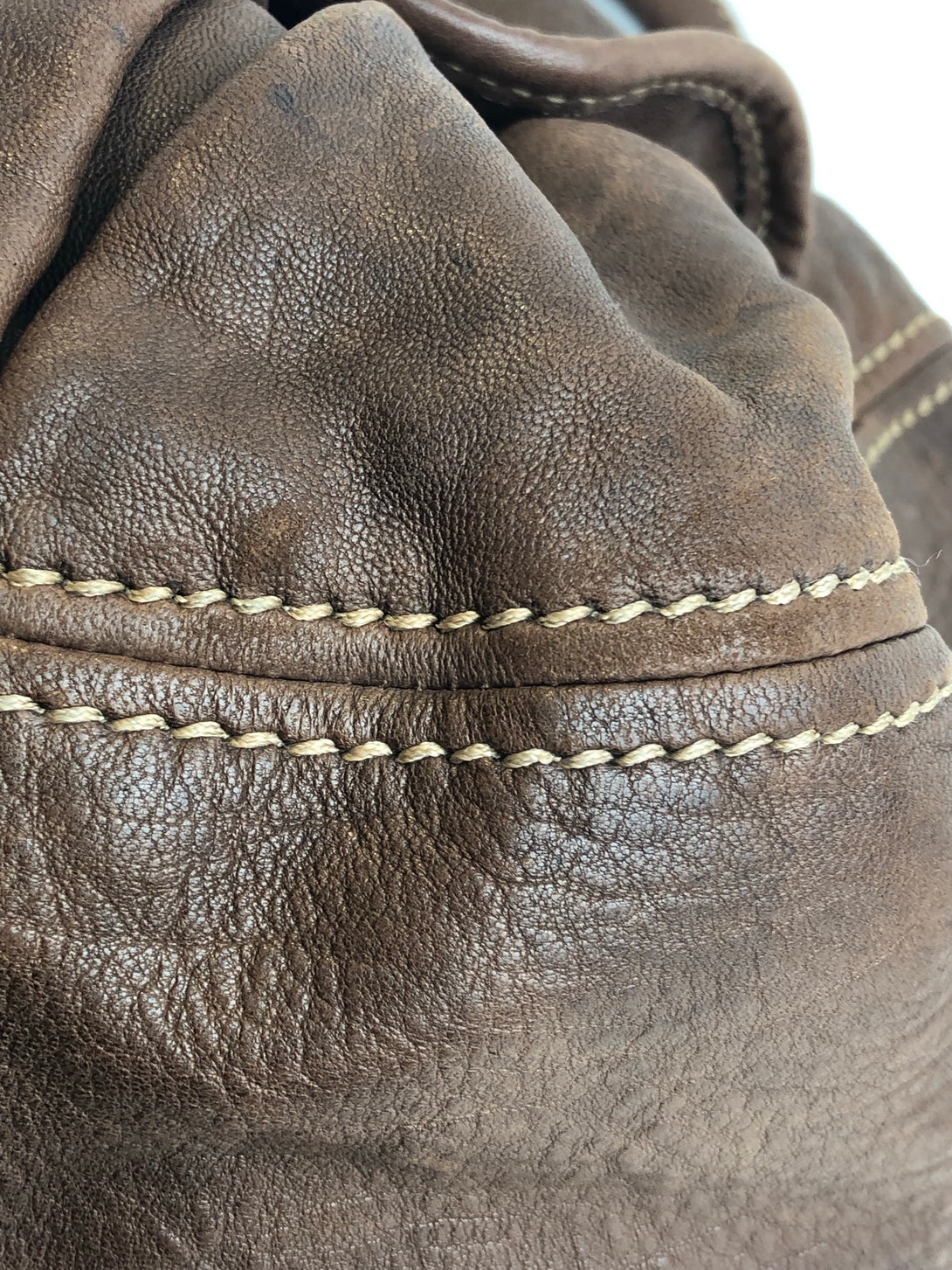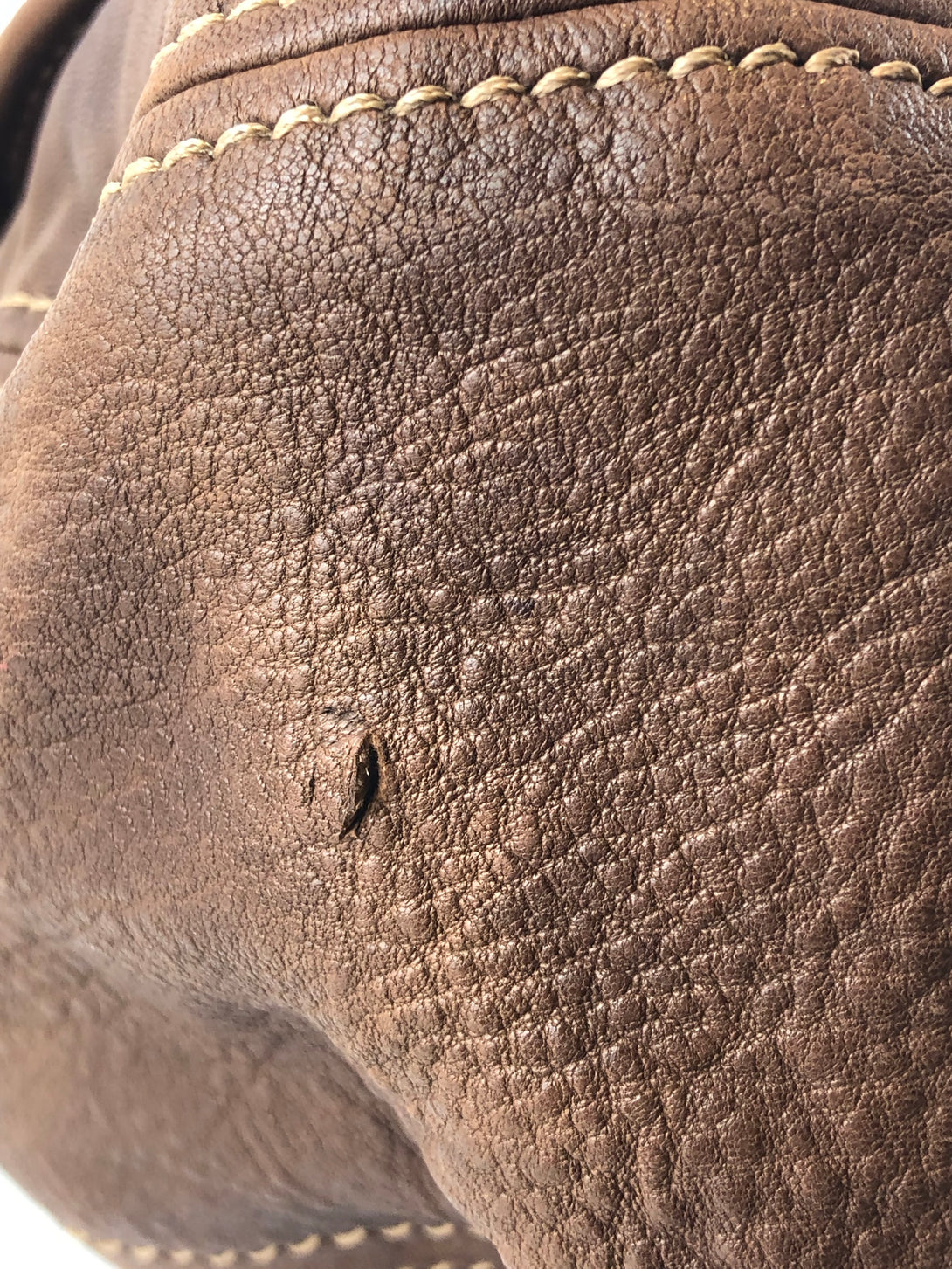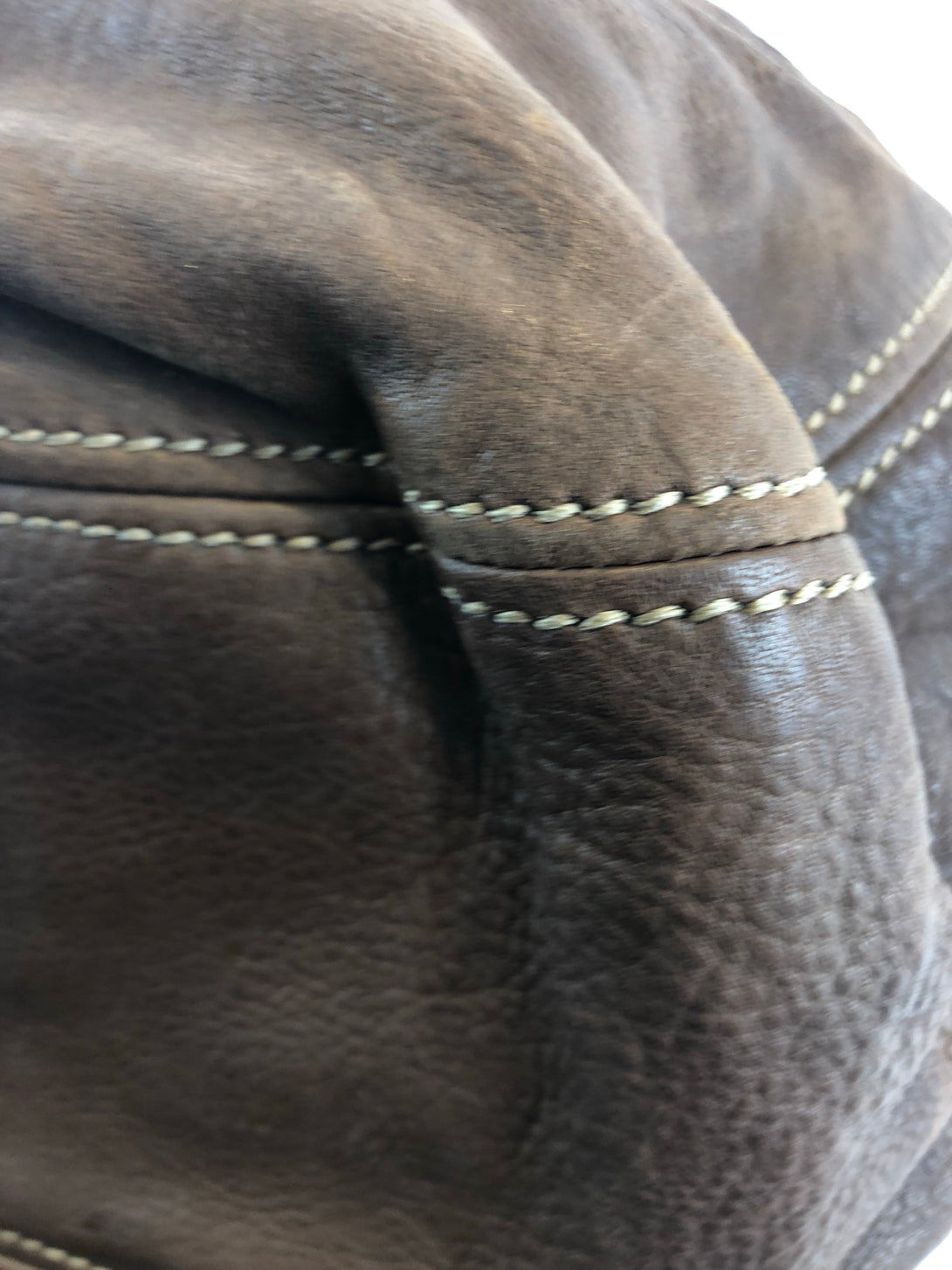 Fair: Very prominent wear, may have holes on corners, severe scuffs, piping of bag showing and pen marks to exterior. Interior may have pen or make up marks.