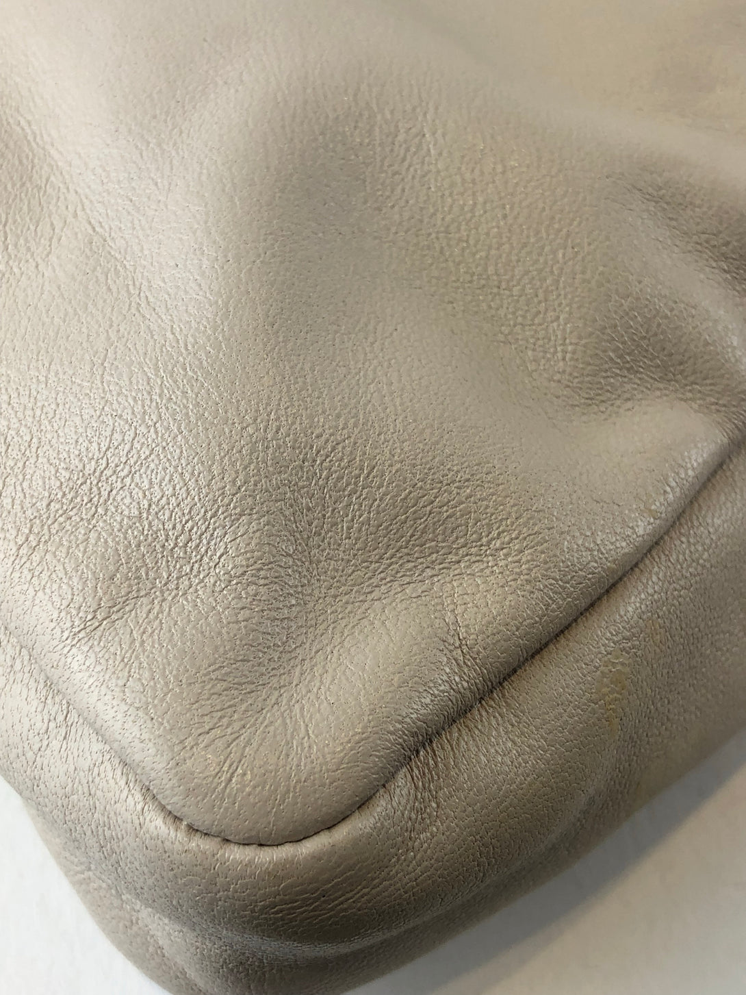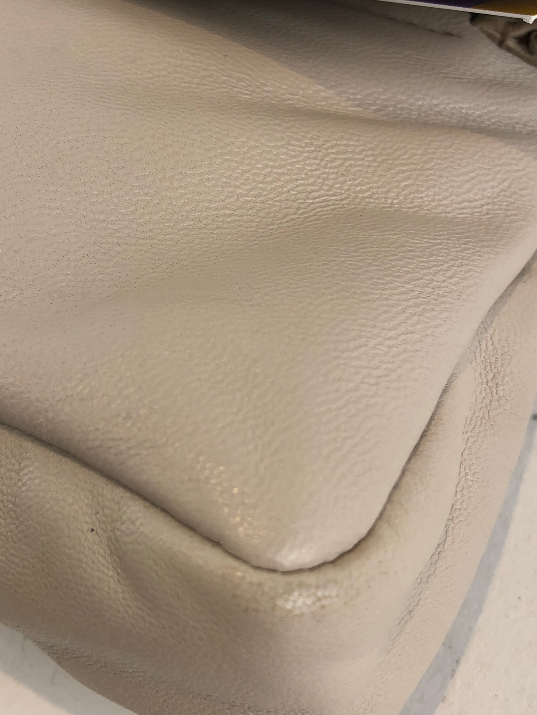 Good: Items show more prominent wear such as noticeable discoloration, stains and snags to fabric. May have worn corners and handles, tarnishing to hardware and creasing to leather. Pen or make up marks may be visible in the interior of the bag.