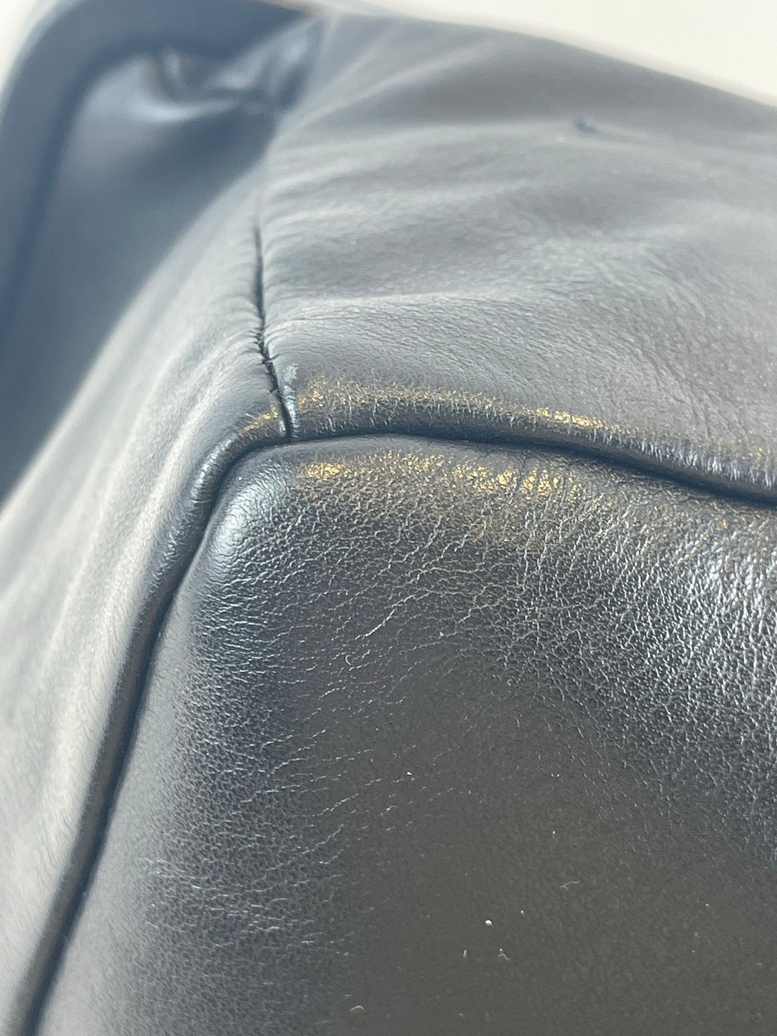 Good: Items show more prominent wear such as noticeable discoloration, stains and snags to fabric. May have worn corners and handles, tarnishing to hardware and creasing to leather. Pen or make up marks may be visible in the interior of the bag.