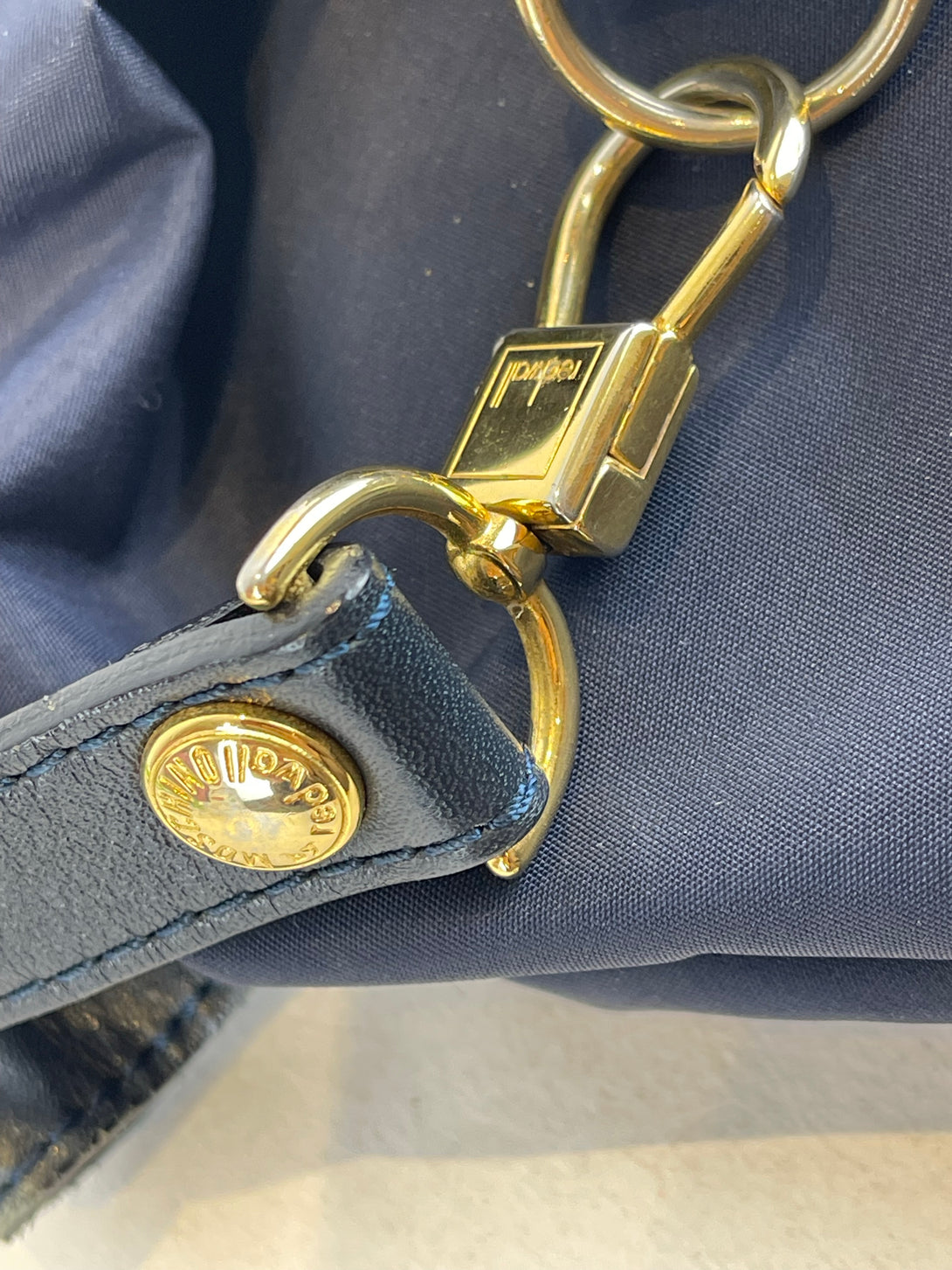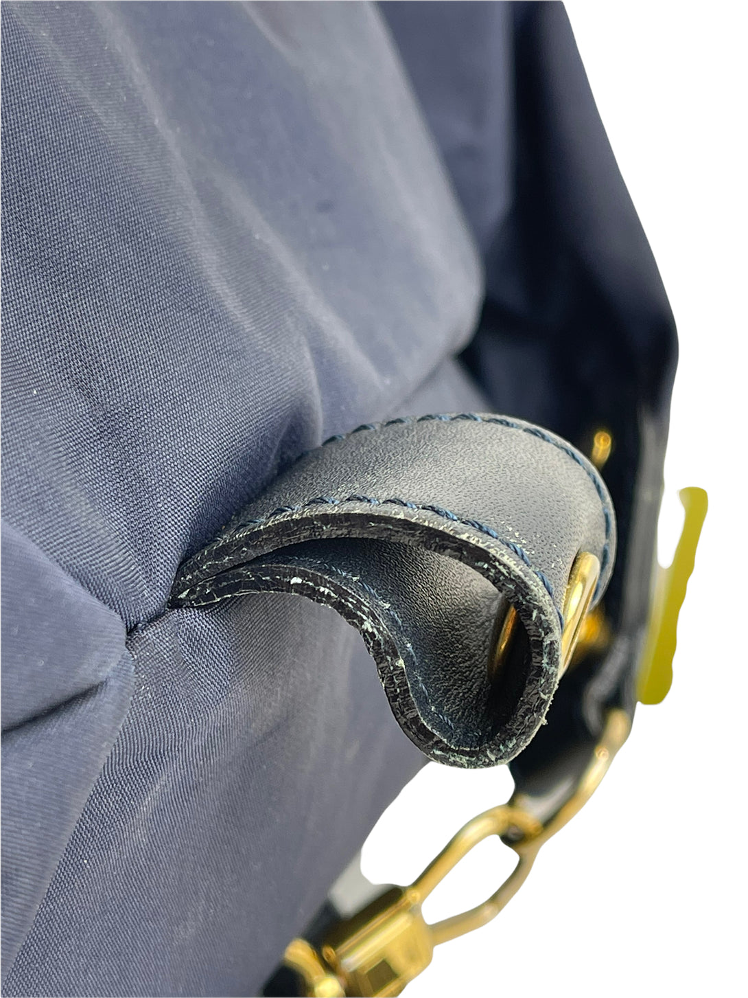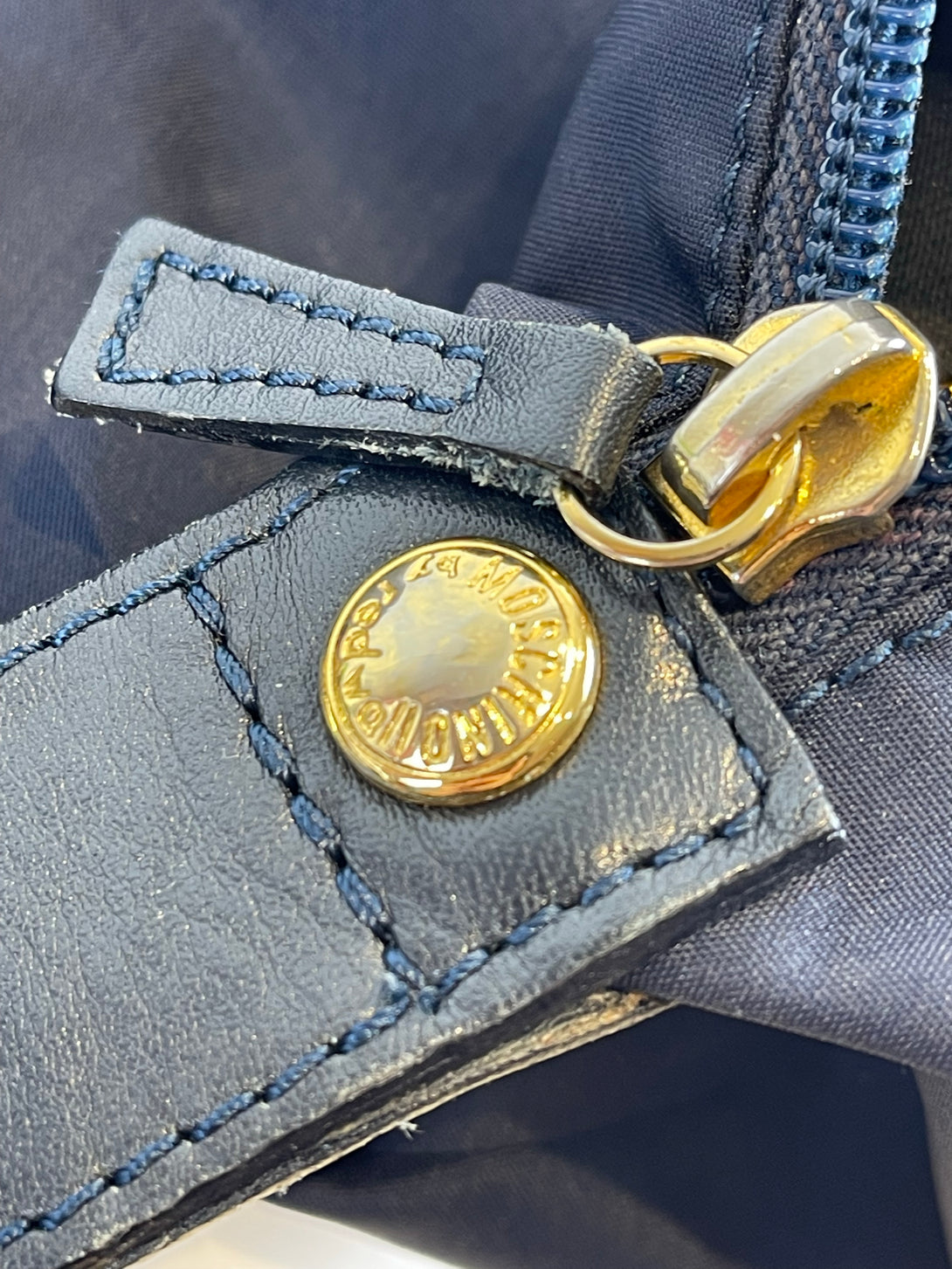 Good: Items show more prominent wear such as noticeable discoloration, stains and snags to fabric. May have worn corners and handles, tarnishing to hardware and creasing to leather. Pen or make up marks may be visible in the interior of the bag.