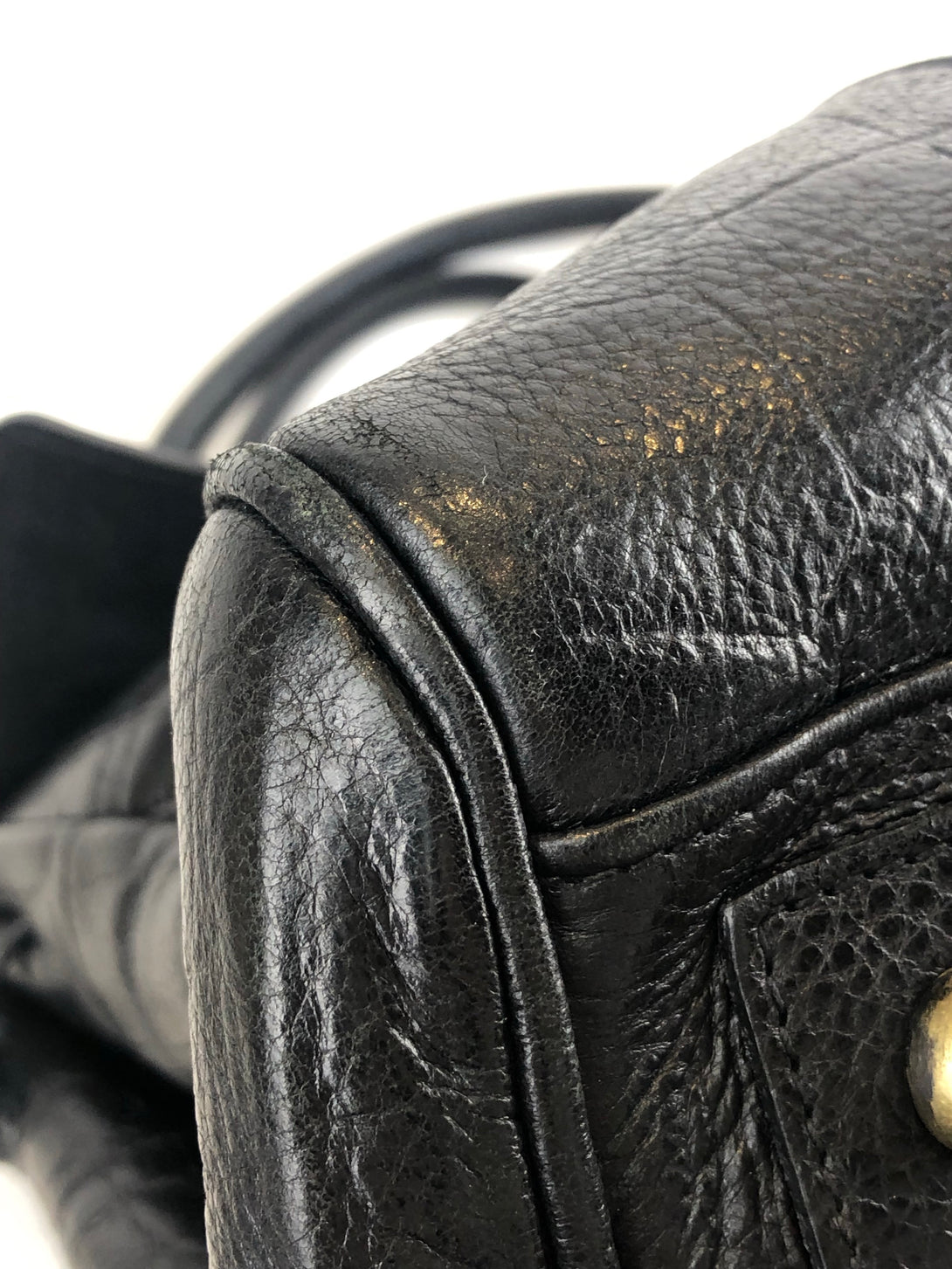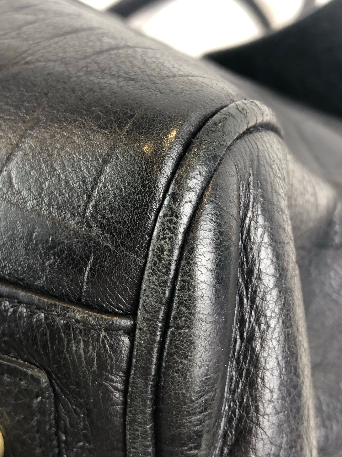 Good: Items show more prominent wear such as noticeable discoloration, stains and snags to fabric. May have worn corners and handles, tarnishing to hardware and creasing to leather. Pen or make up marks may be visible in the interior of the bag.