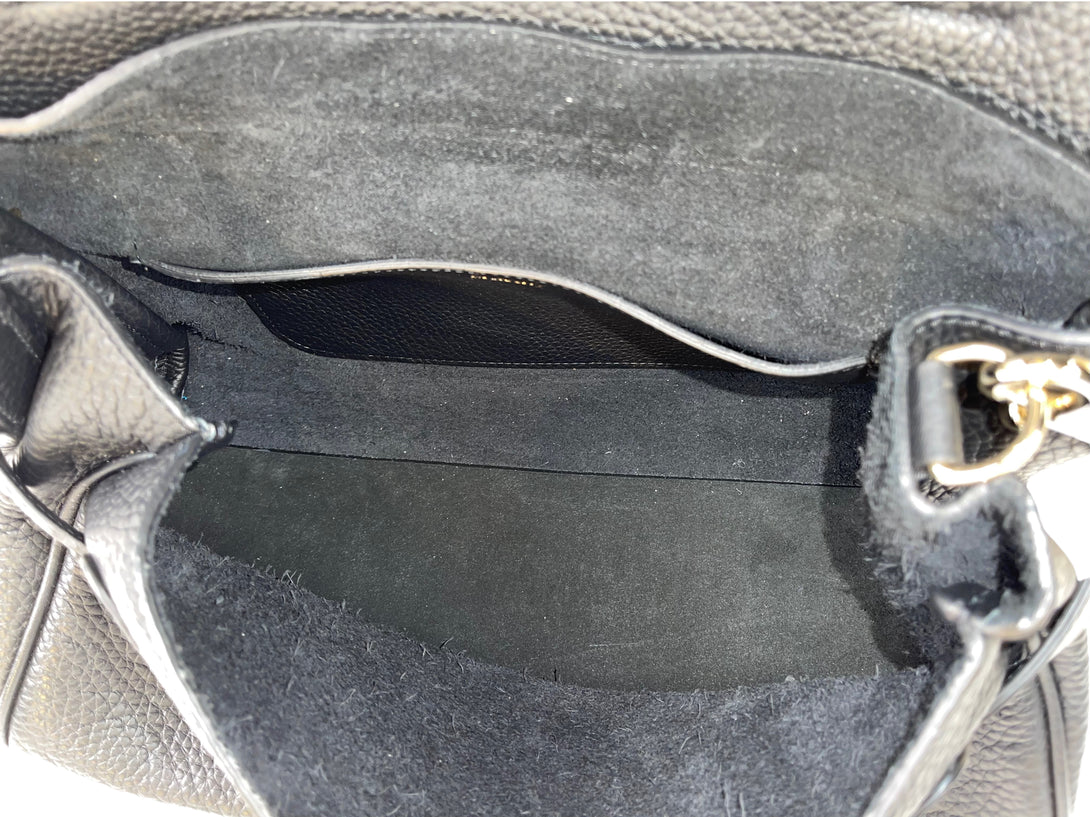 Good: Items show more prominent wear such as noticeable discoloration, stains and snags to fabric. May have worn corners and handles, tarnishing to hardware and creasing to leather. Pen or make up marks may be visible in the interior of the bag.