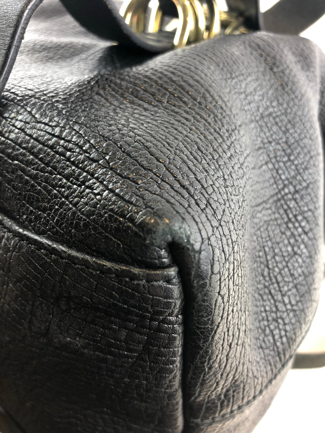 Fair: Very prominent wear, may have holes on corners, severe scuffs, piping of bag showing and pen marks to exterior. Interior may have pen or make up marks.