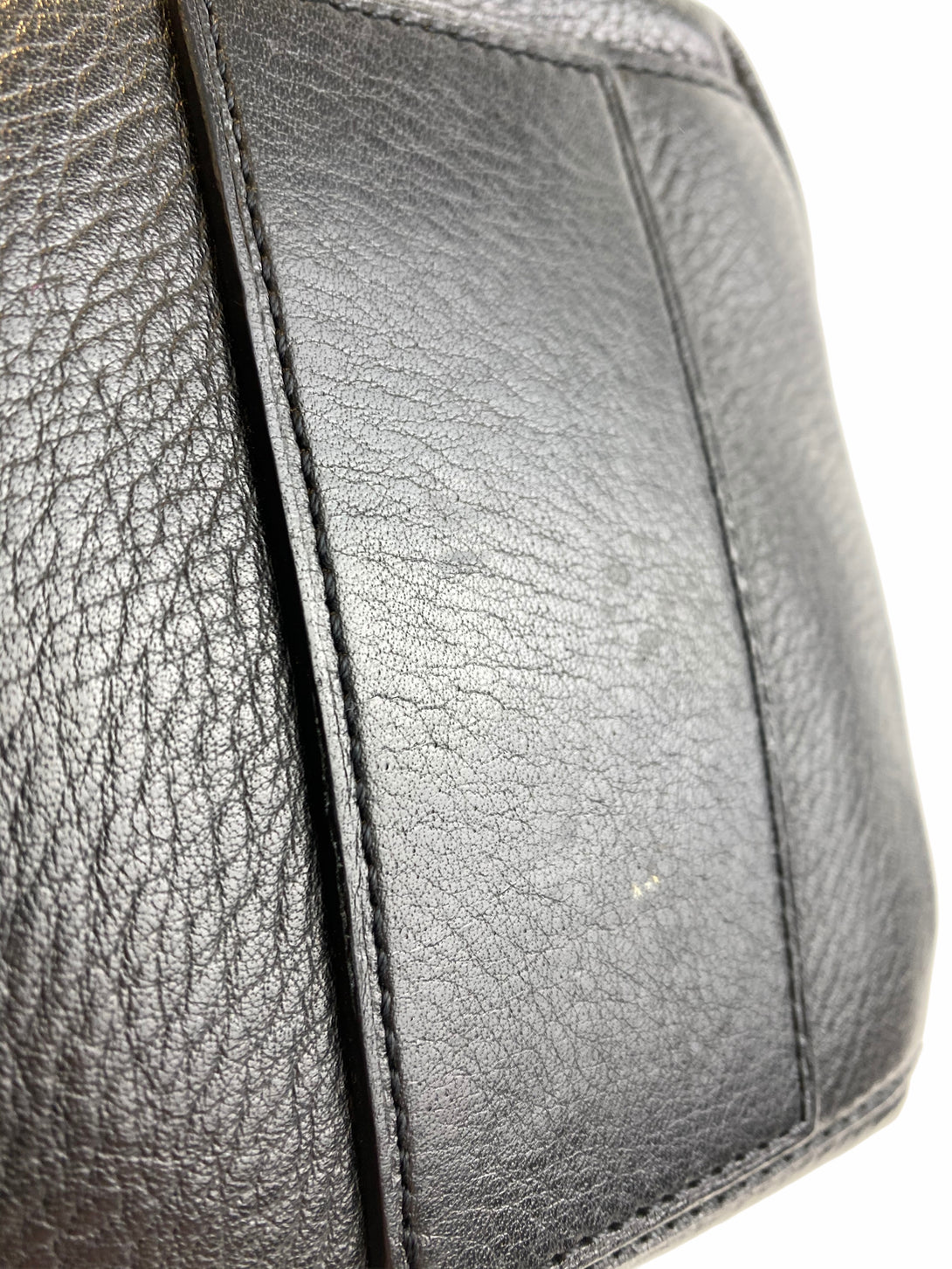 Good: Items show more prominent wear such as noticeable discoloration, stains and snags to fabric. May have worn corners and handles, tarnishing to hardware and creasing to leather. Pen or make up marks may be visible in the interior of the bag.
