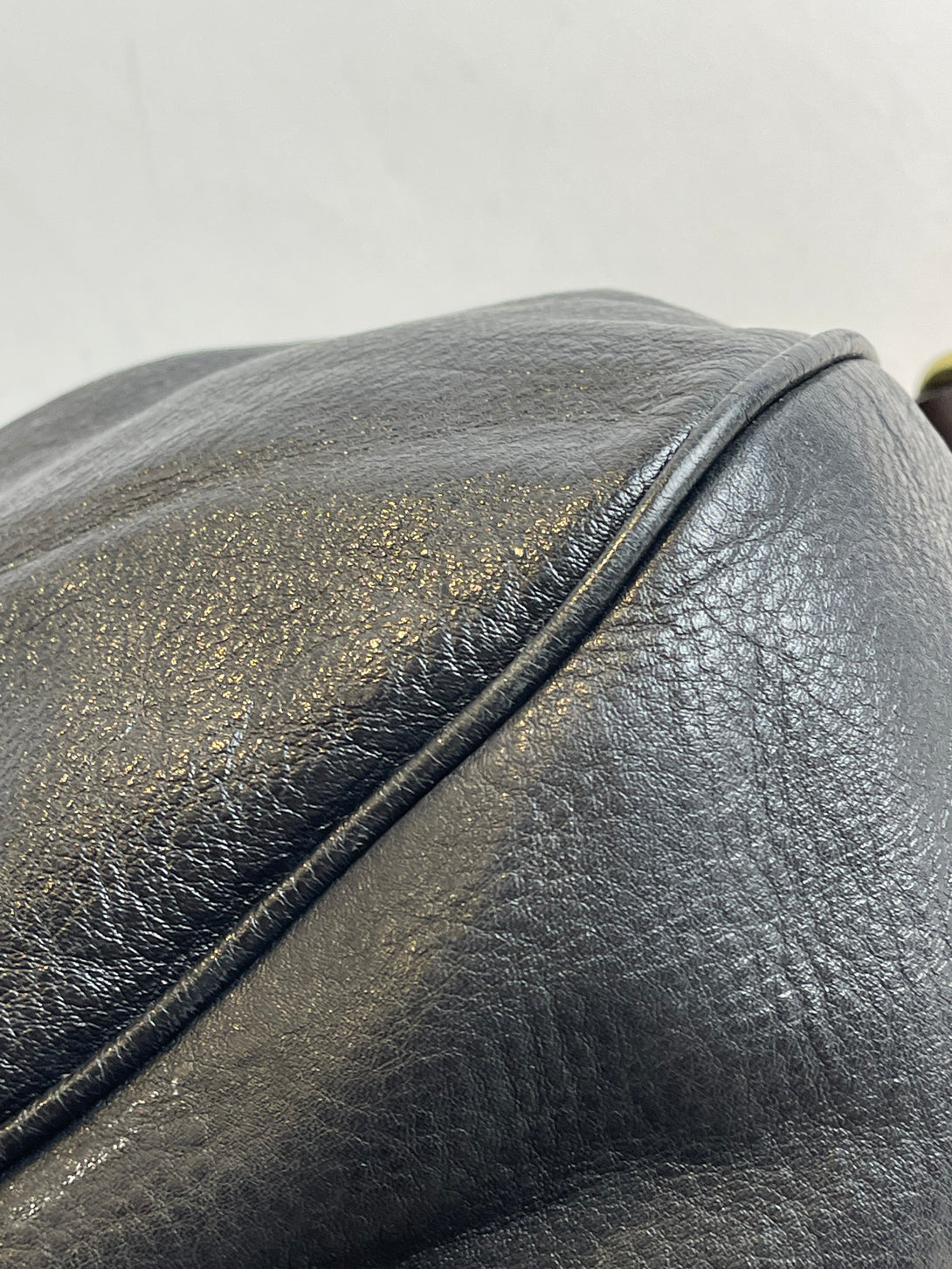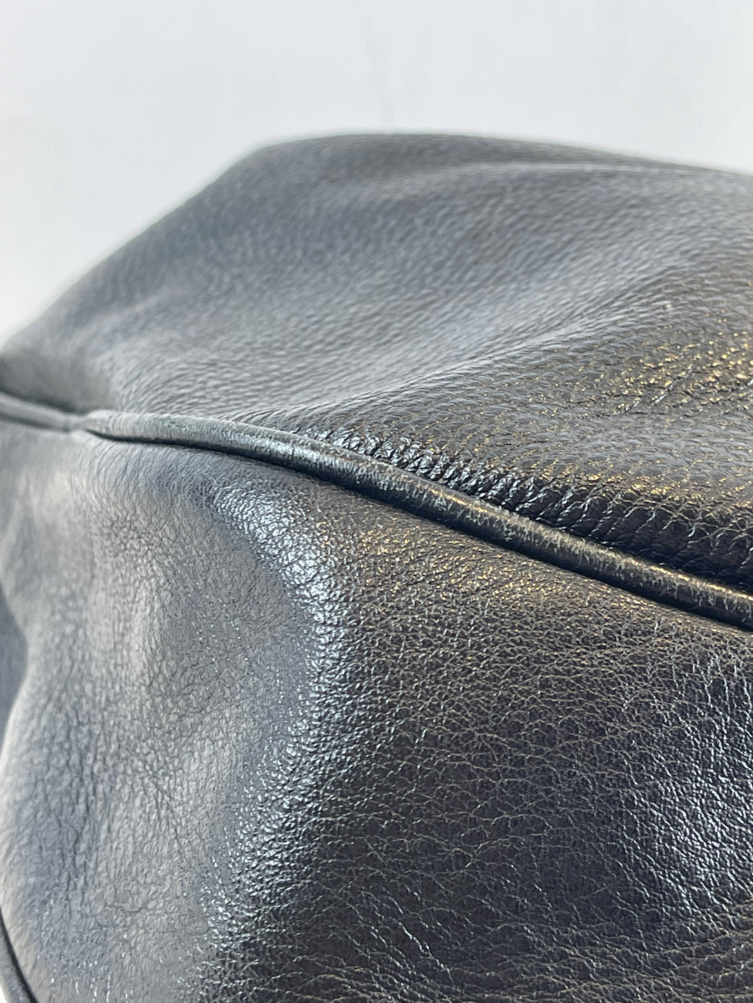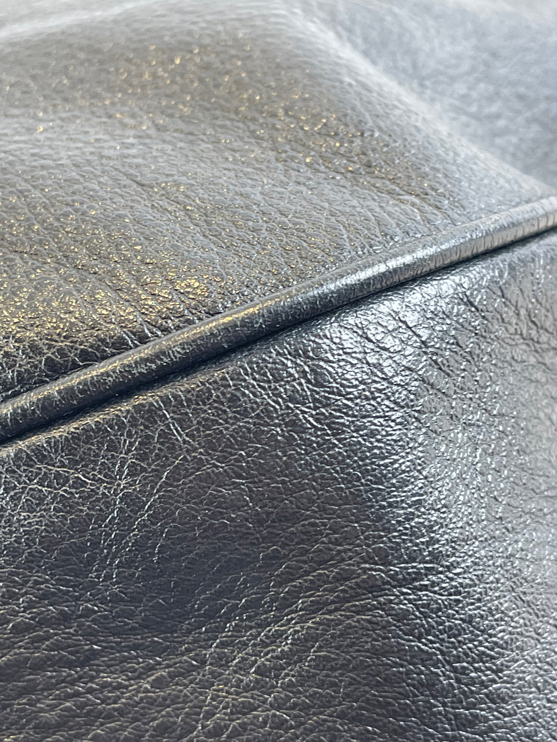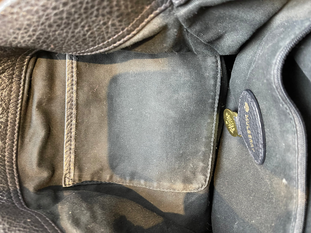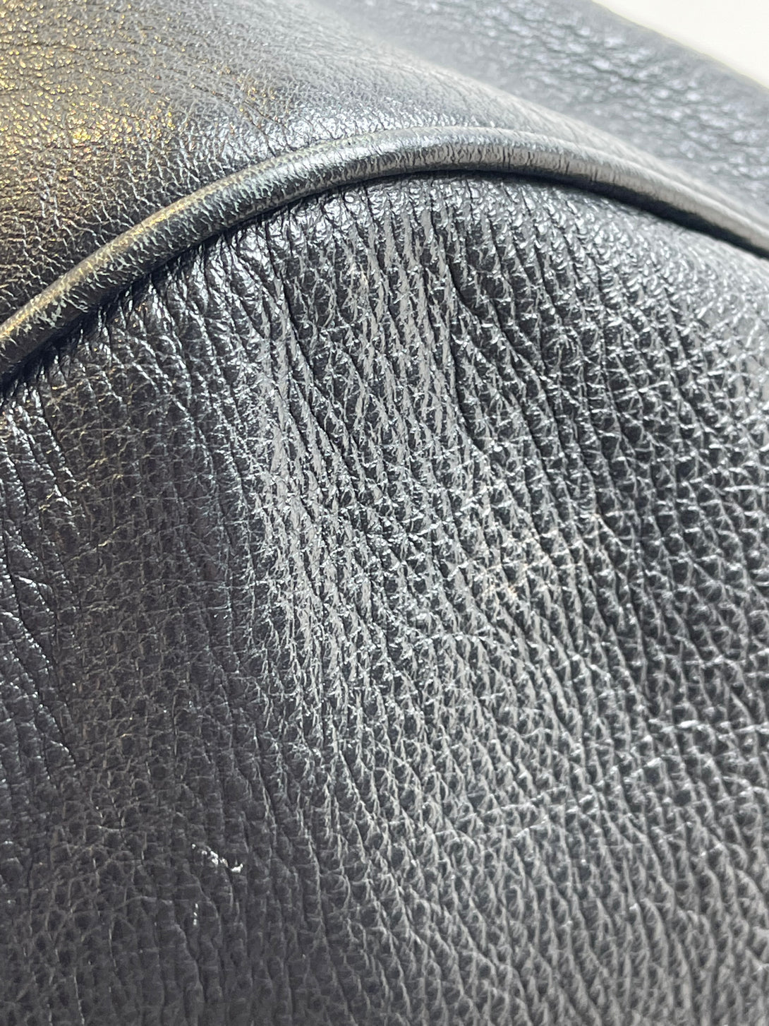 Good: Items show more prominent wear such as noticeable discoloration, stains and snags to fabric. May have worn corners and handles, tarnishing to hardware and creasing to leather. Pen or make up marks may be visible in the interior of the bag.