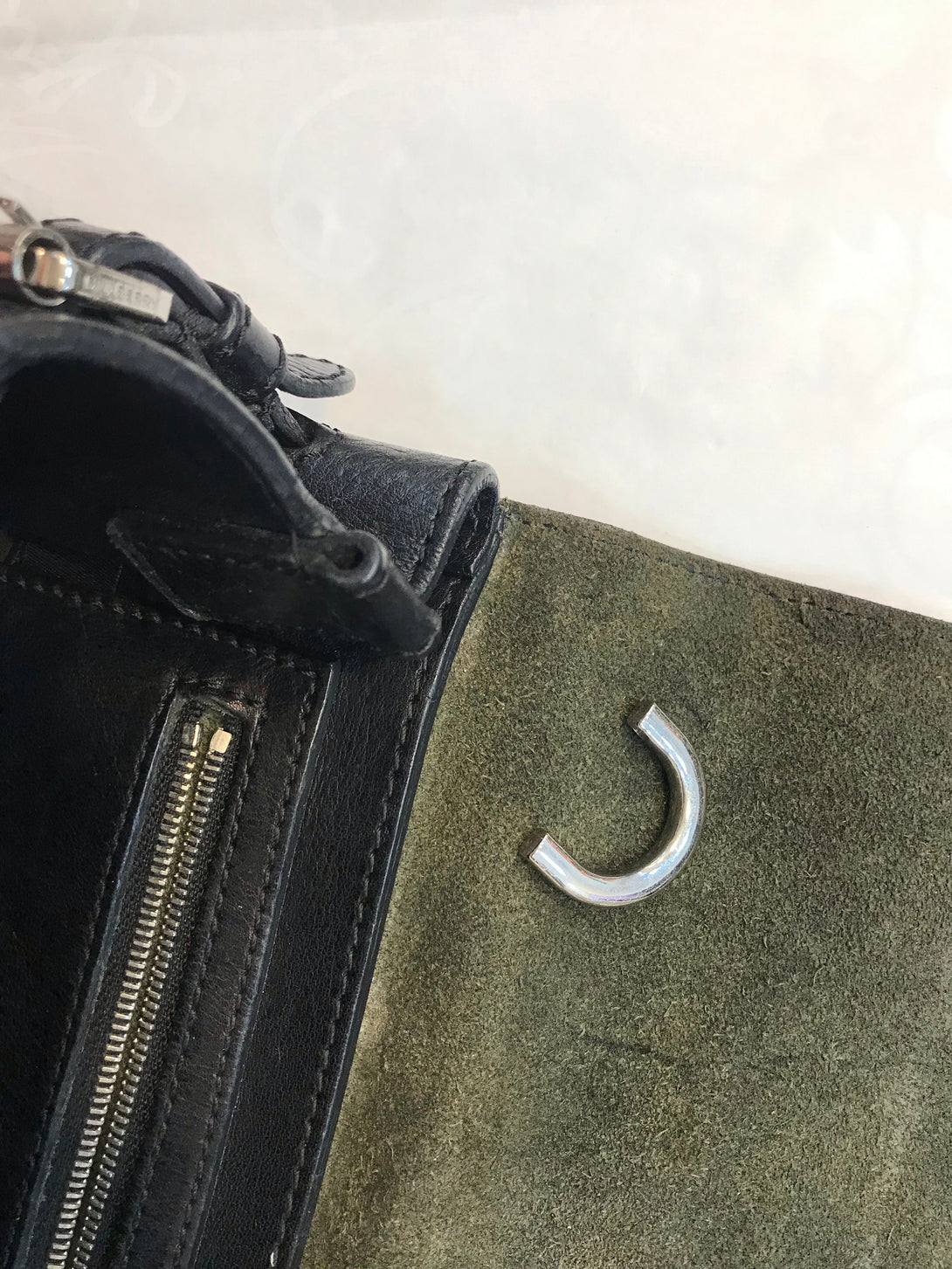 Good: Items show more prominent wear such as noticeable discoloration, stains and snags to fabric. May have worn corners and handles, tarnishing to hardware and creasing to leather. Pen or make up marks may be visible in the interior of the bag.