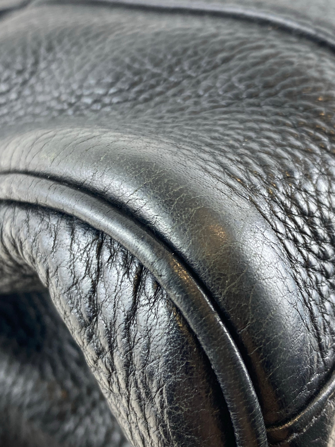 Good: Items show more prominent wear such as noticeable discoloration, stains and snags to fabric. May have worn corners and handles, tarnishing to hardware and creasing to leather. Pen or make up marks may be visible in the interior of the bag.