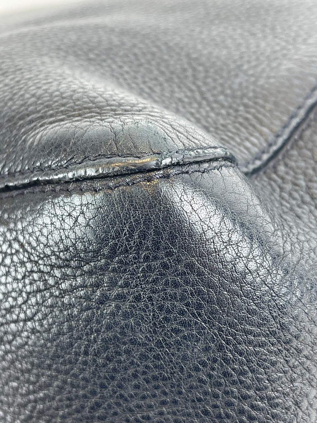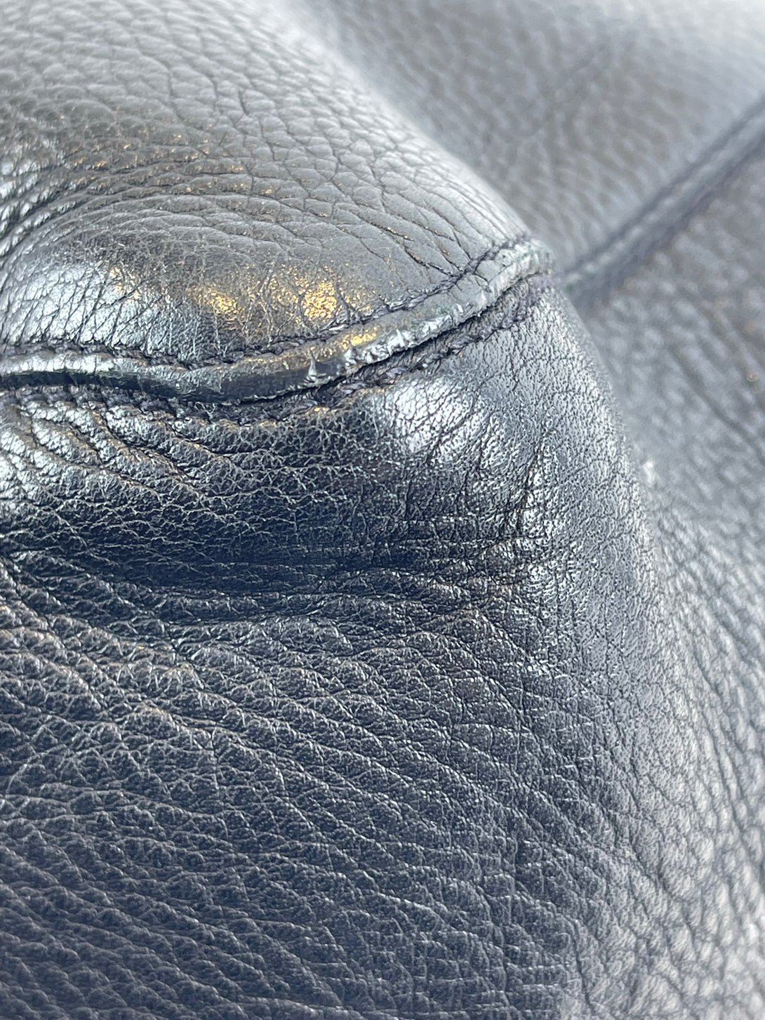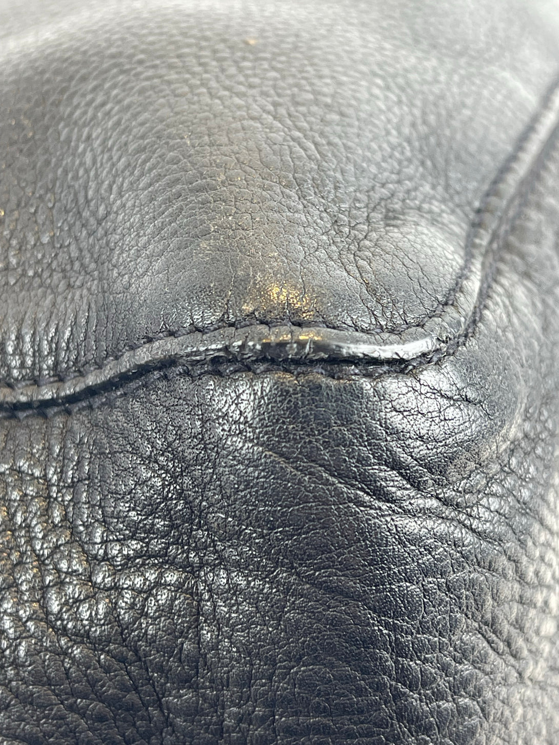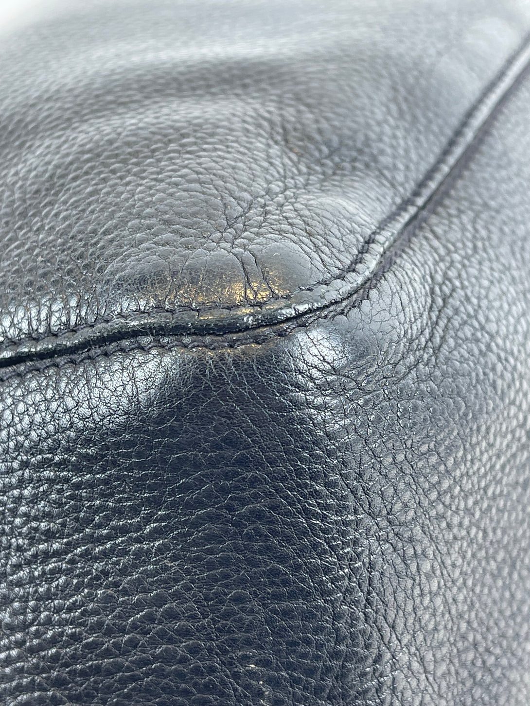Good: Items show more prominent wear such as noticeable discoloration, stains and snags to fabric. May have worn corners and handles, tarnishing to hardware and creasing to leather. Pen or make up marks may be visible in the interior of the bag.