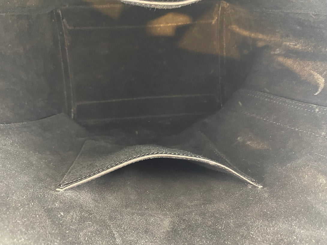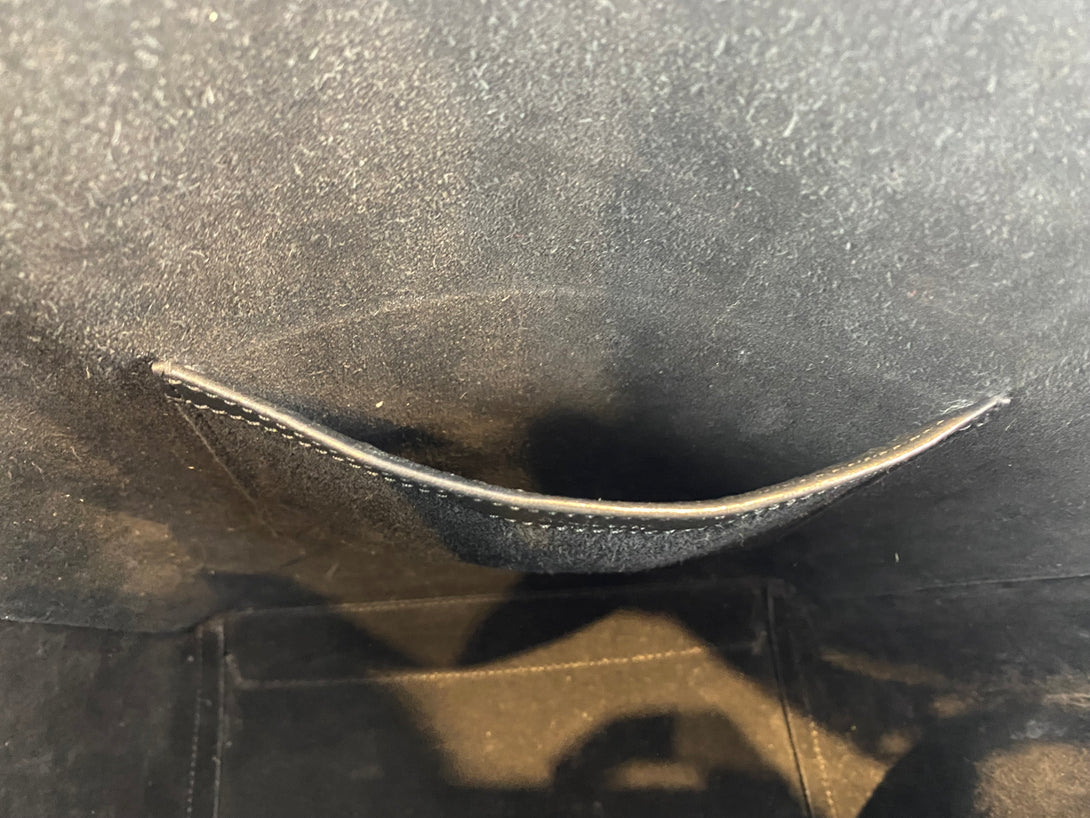 Good: Items show more prominent wear such as noticeable discoloration, stains and snags to fabric. May have worn corners and handles, tarnishing to hardware and creasing to leather. Pen or make up marks may be visible in the interior of the bag.