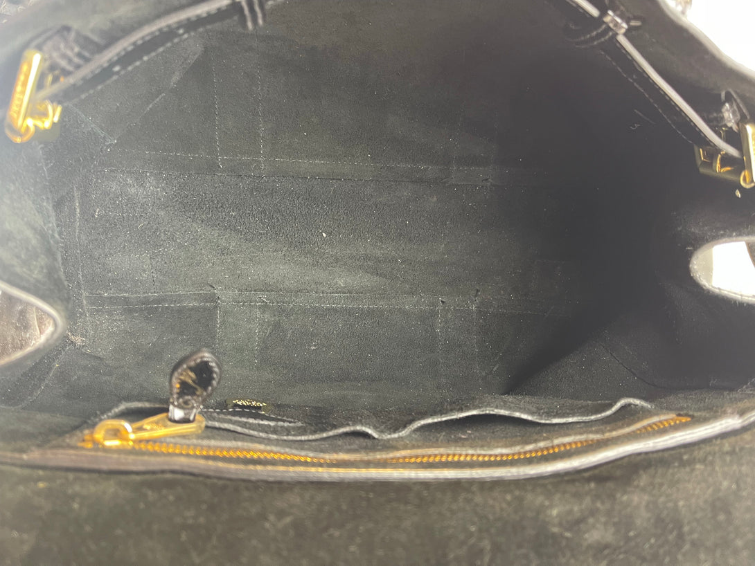 Good: Items show more prominent wear such as noticeable discoloration, stains and snags to fabric. May have worn corners and handles, tarnishing to hardware and creasing to leather. Pen or make up marks may be visible in the interior of the bag.