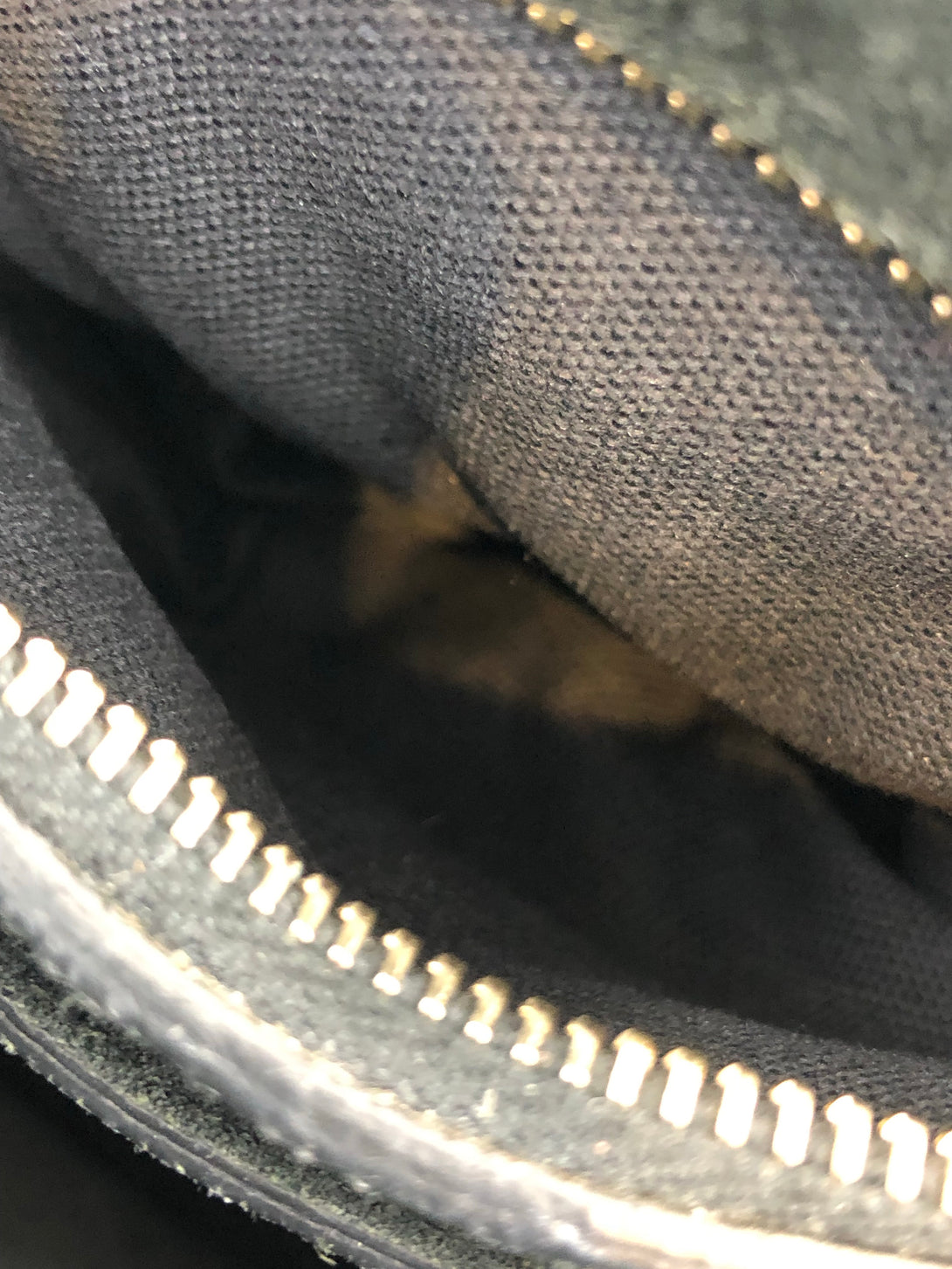 Good: Items show more prominent wear such as noticeable discoloration, stains and snags to fabric. May have worn corners and handles, tarnishing to hardware and creasing to leather. Pen or make up marks may be visible in the interior of the bag.