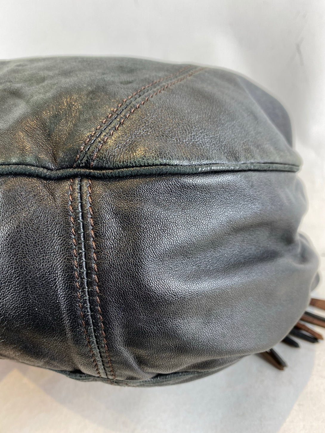 Good: Items show more prominent wear such as noticeable discoloration, stains and snags to fabric. May have worn corners and handles, tarnishing to hardware and creasing to leather. Pen or make up marks may be visible in the interior of the bag.
