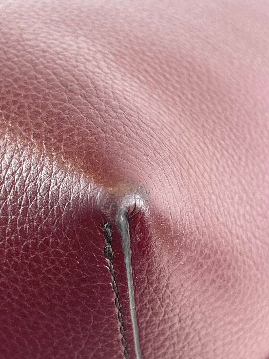Good: Items show more prominent wear such as noticeable discoloration, stains and snags to fabric. May have worn corners and handles, tarnishing to hardware and creasing to leather. Pen or make up marks may be visible in the interior of the bag.