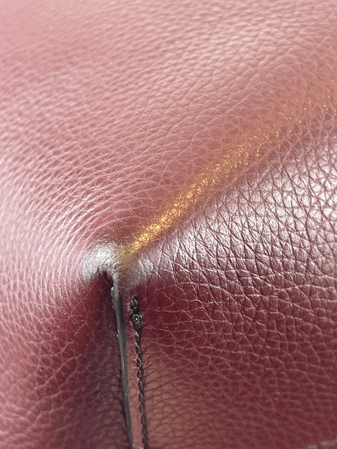 Fair: Very prominent wear, may have holes on corners, severe scuffs, piping of bag showing and pen marks to exterior. Interior may have pen or make up marks.