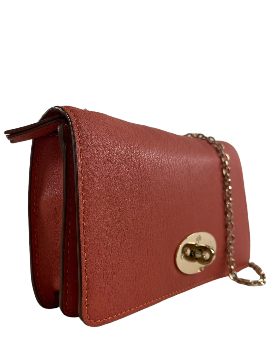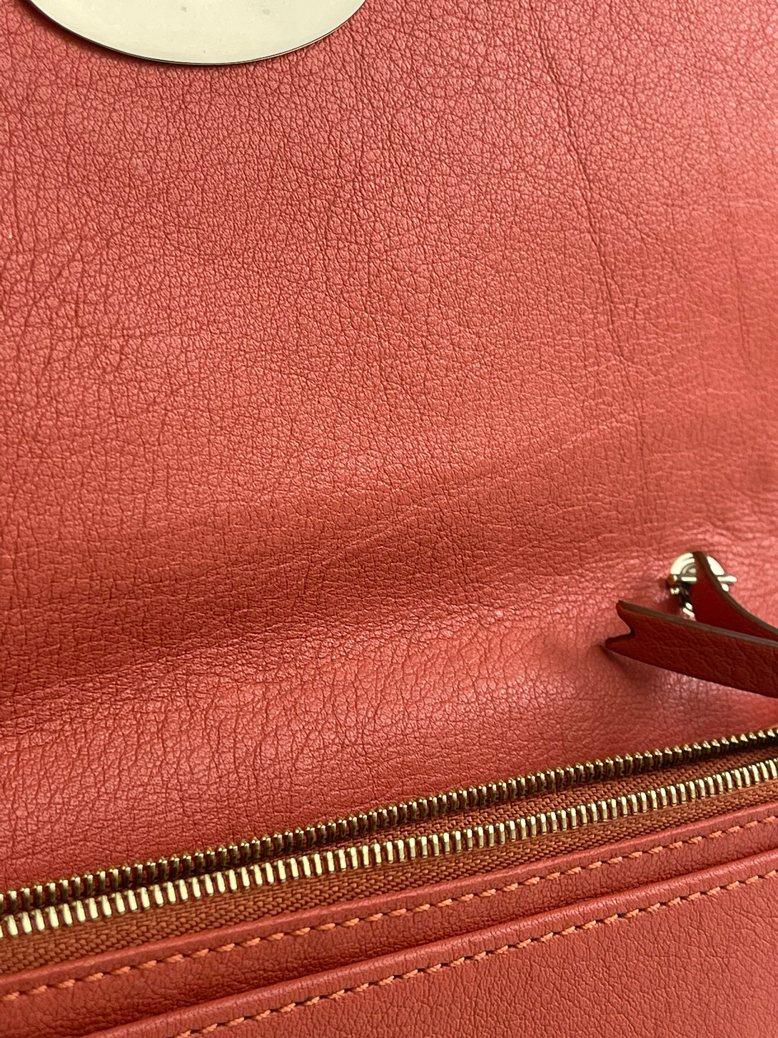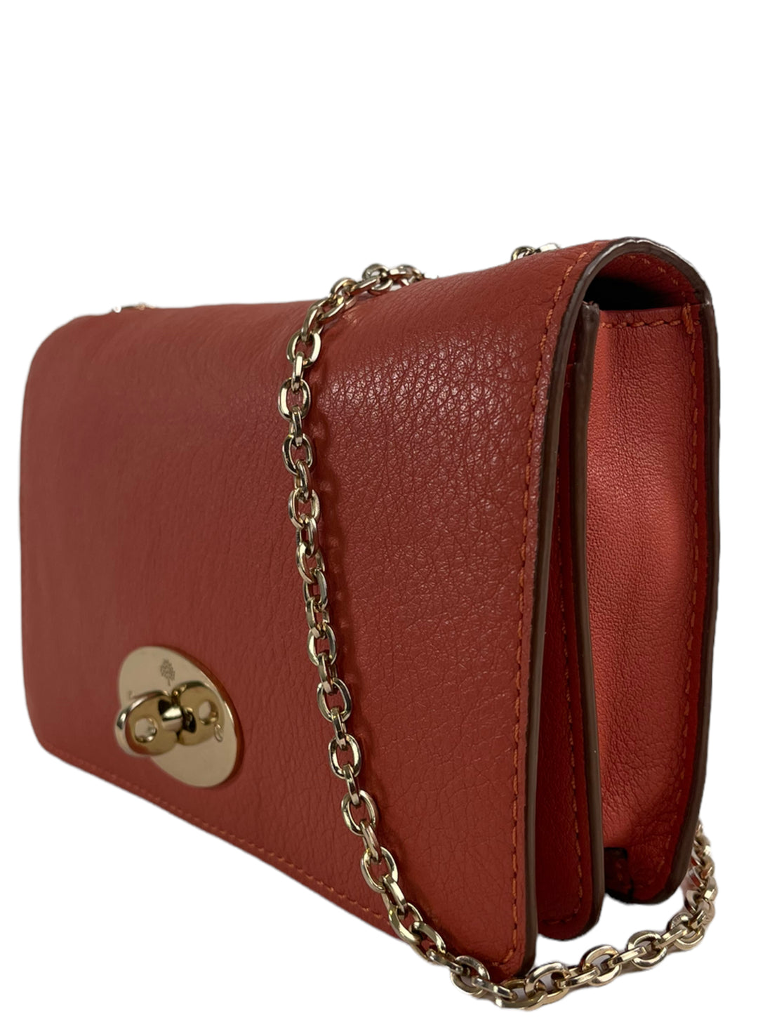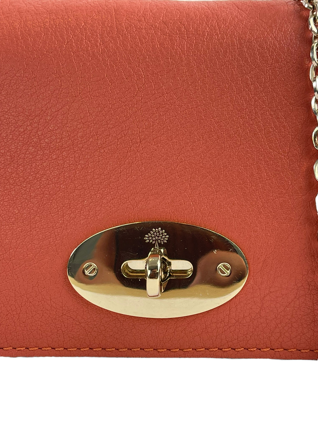 Mulberry Coral Leather "Bayswater" Wallet on Chain