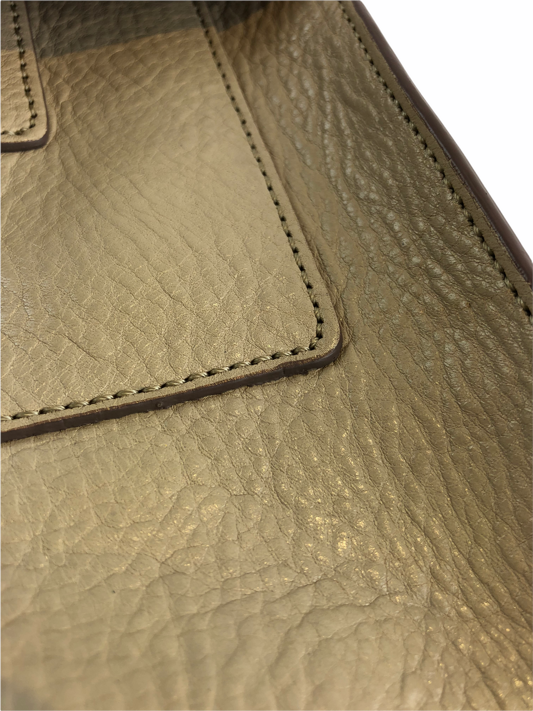 Good: Items show more prominent wear such as noticeable discoloration, stains and snags to fabric. May have worn corners and handles, tarnishing to hardware and creasing to leather. Pen or make up marks may be visible in the interior of the bag.