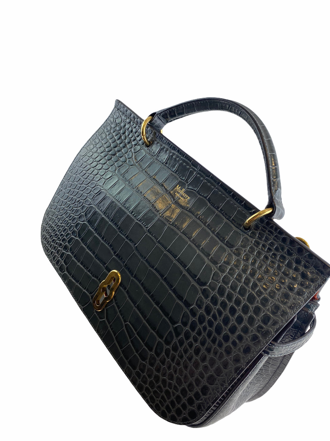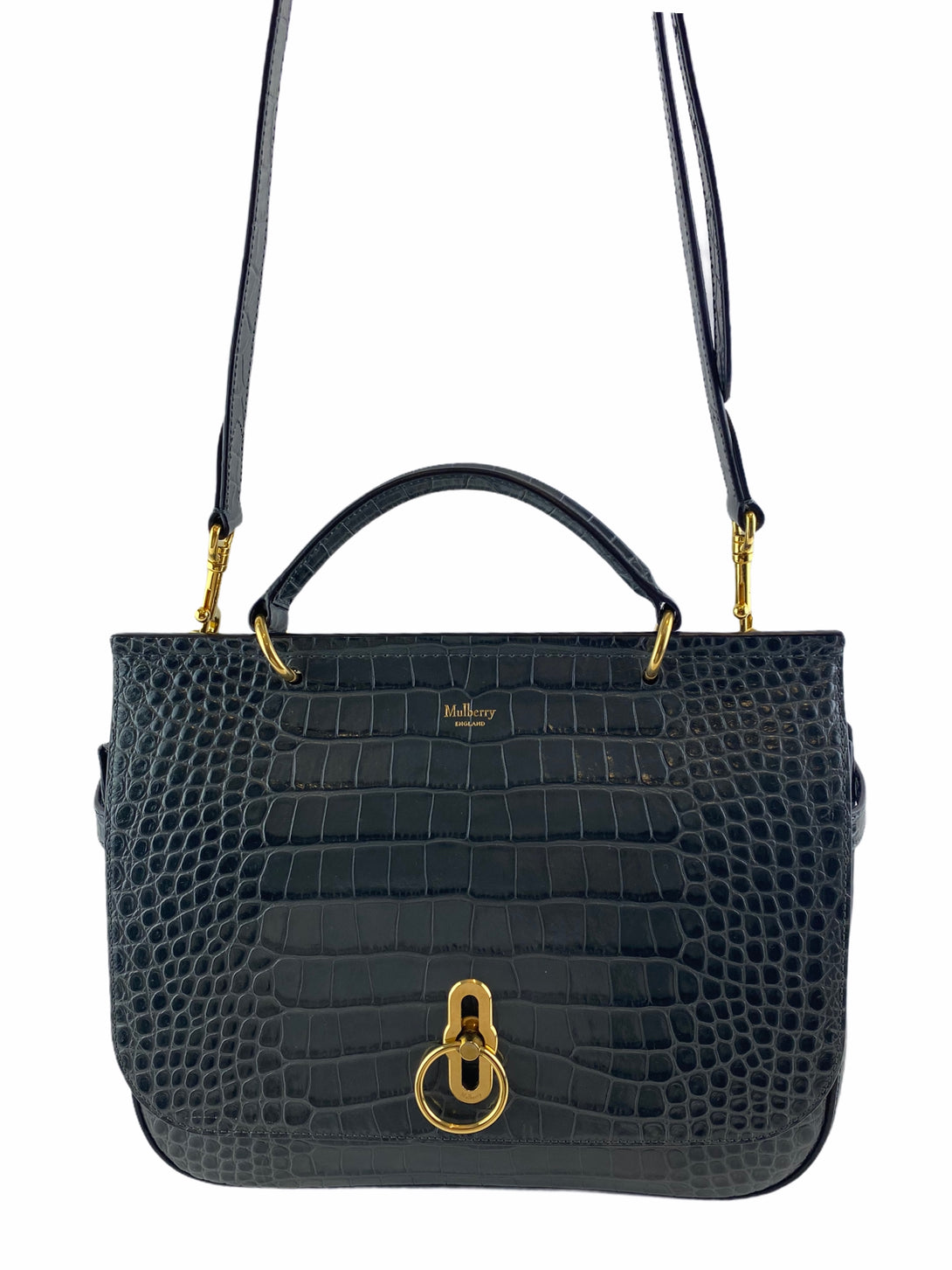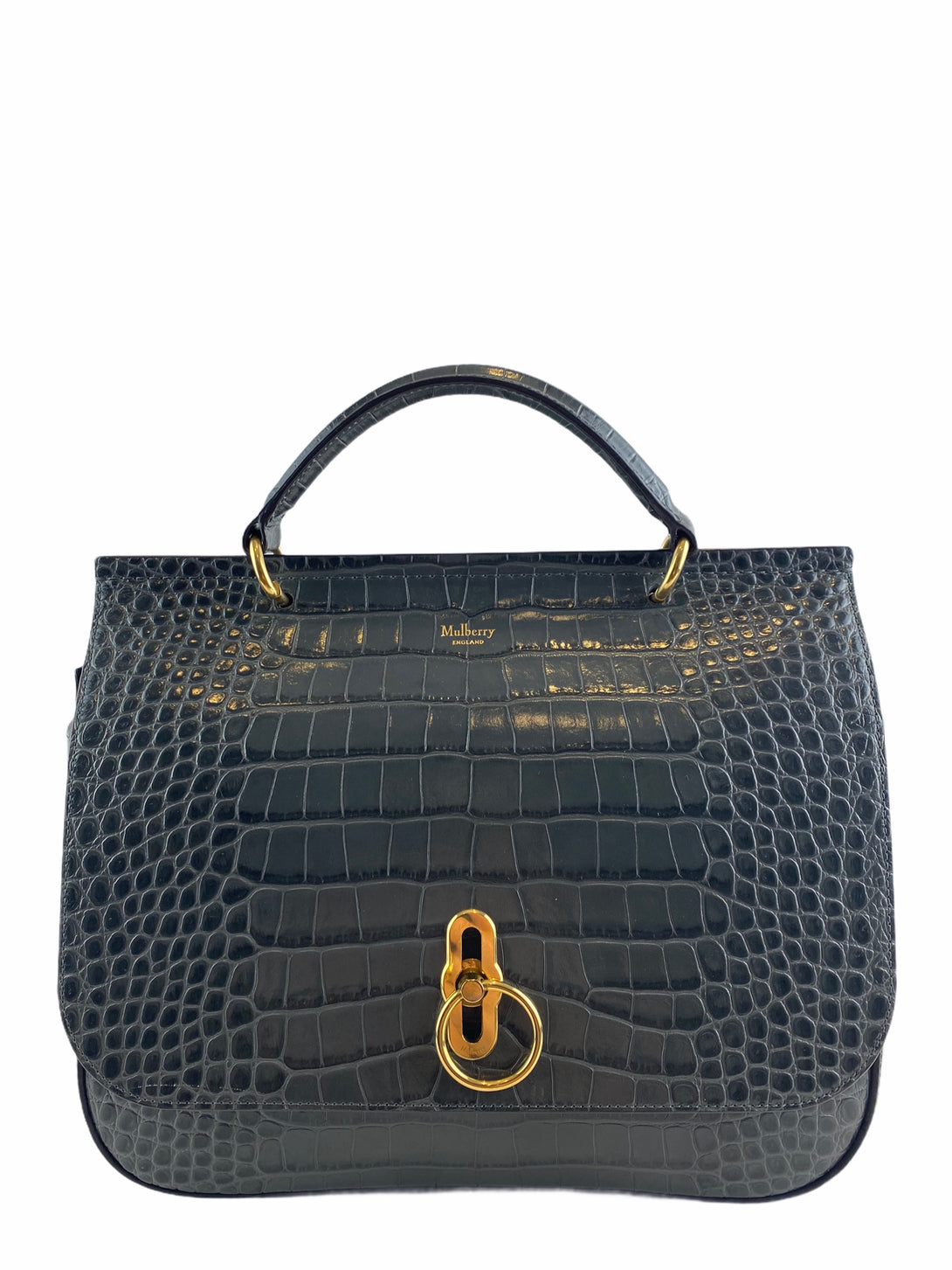 Mulberry Grey/Blue Croc Effect Leather ‘Amberley’ Satchel