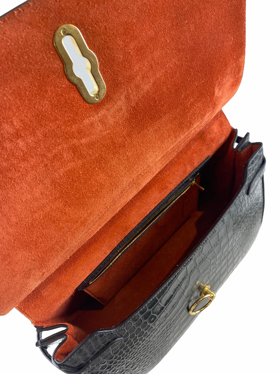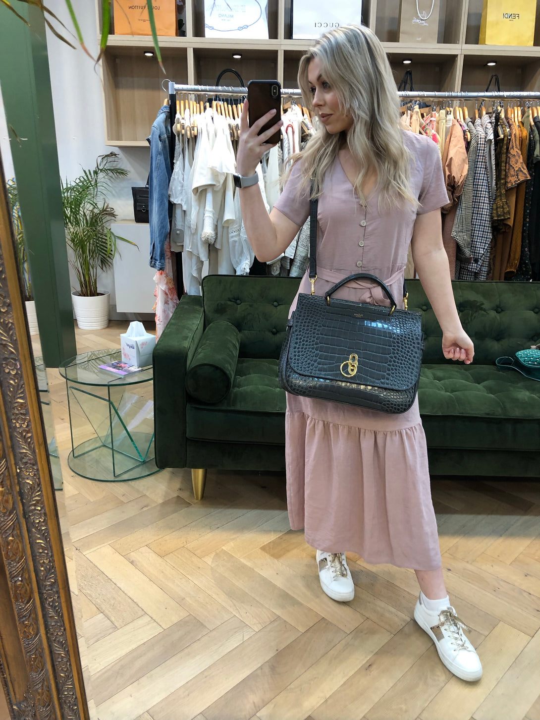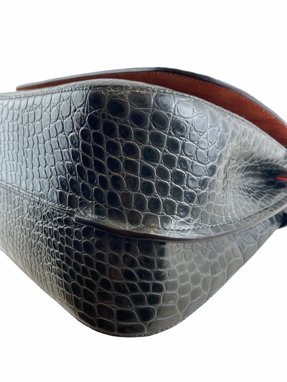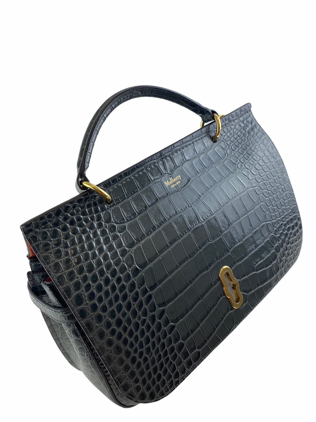Mulberry Grey/Blue Croc Effect Leather ‘Amberley’ Satchel