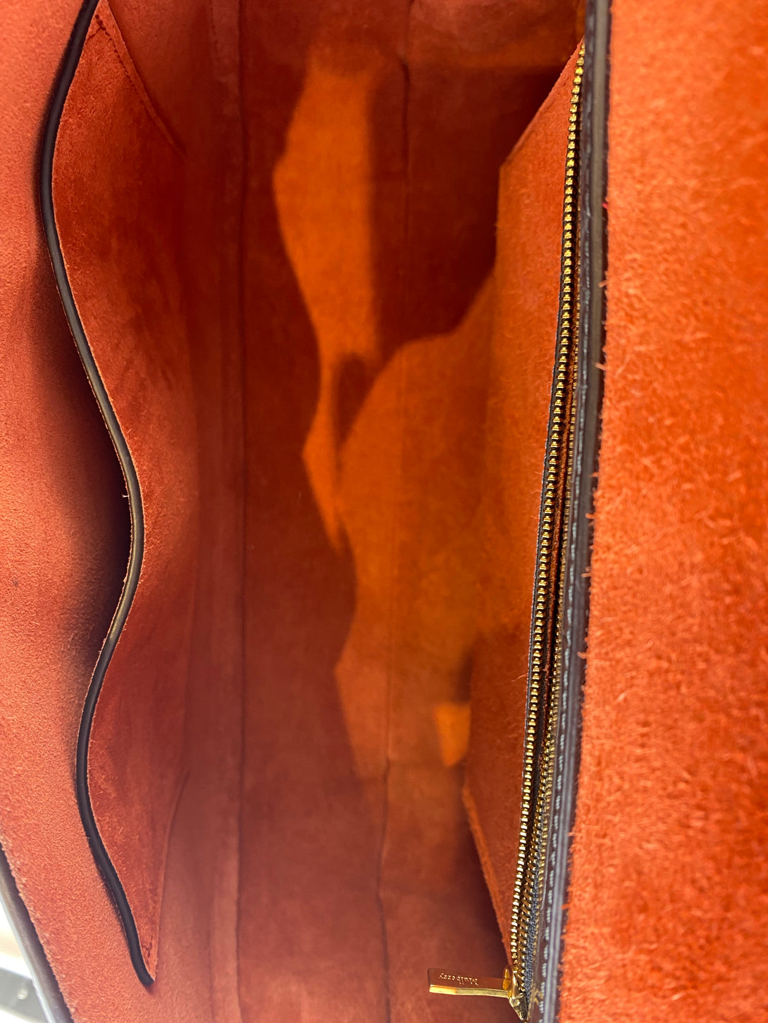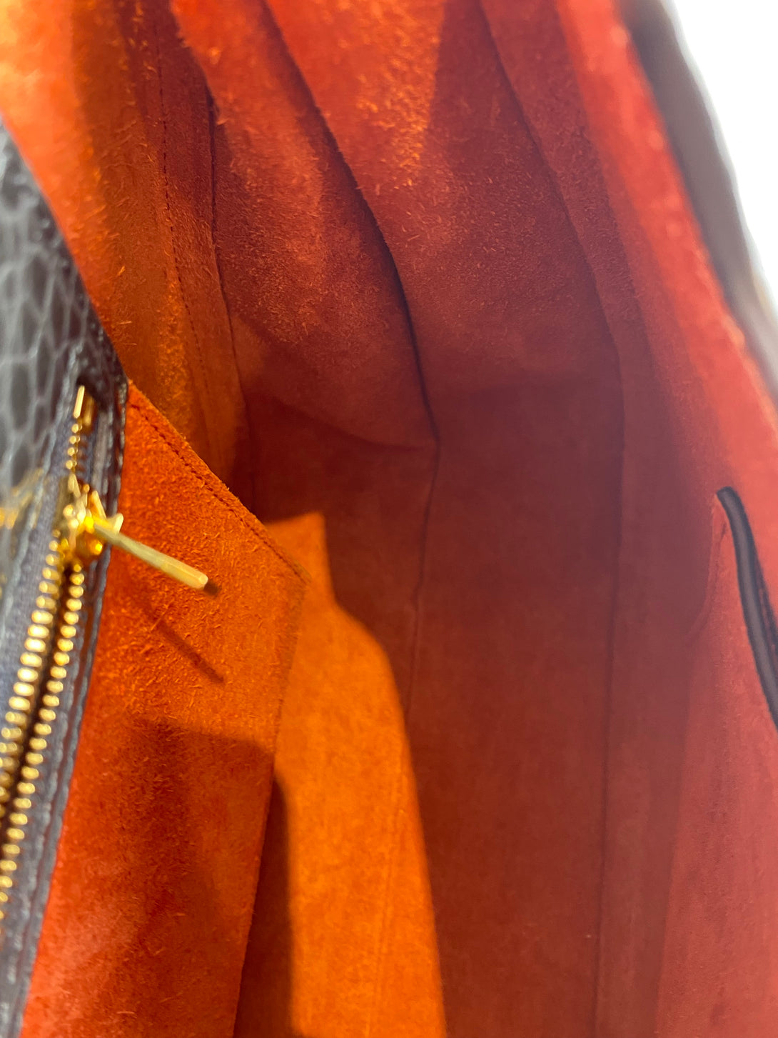 Good: Items show more prominent wear such as noticeable discoloration, stains and snags to fabric. May have worn corners and handles, tarnishing to hardware and creasing to leather. Pen or make up marks may be visible in the interior of the bag.