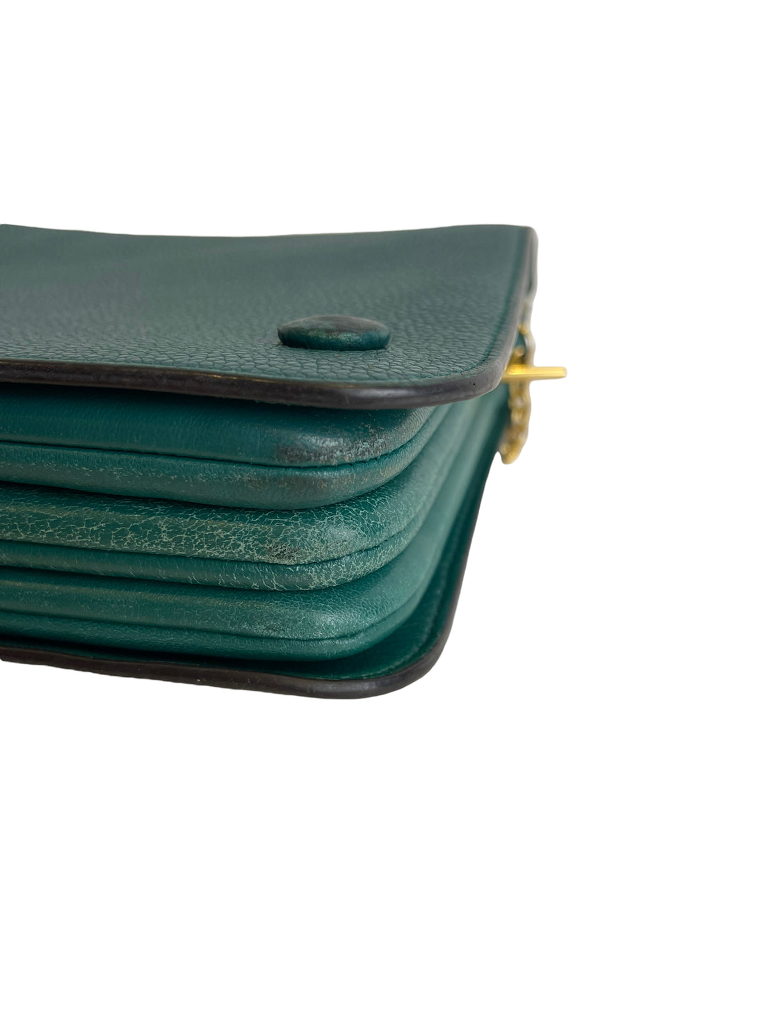Good: Items show more prominent wear such as noticeable discoloration, stains and snags to fabric. May have worn corners and handles, tarnishing to hardware and creasing to leather. Pen or make up marks may be visible in the interior of the bag.