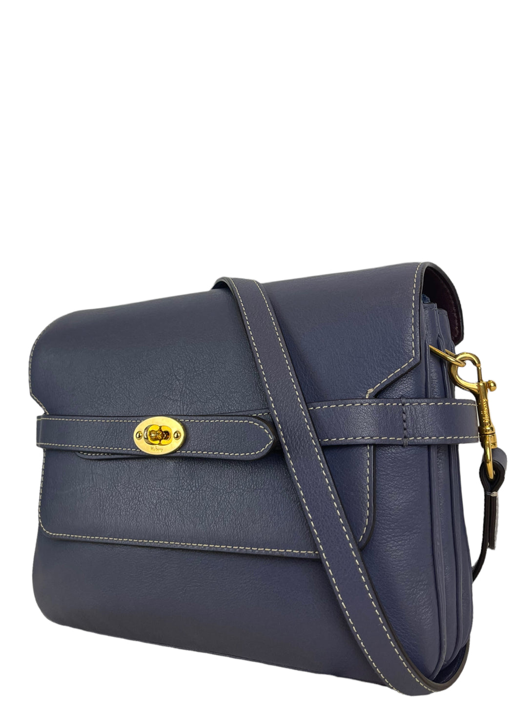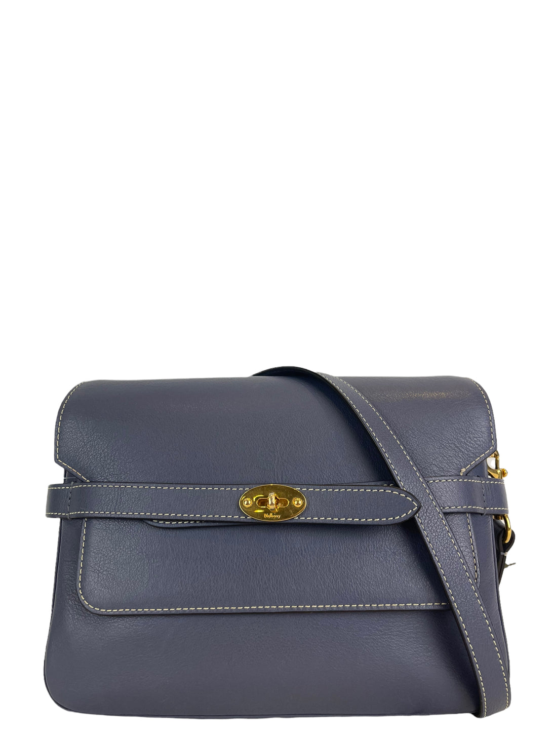 Mulberry Bue/Grey Leather Belted "Bayswater" Crossbody Satchel
