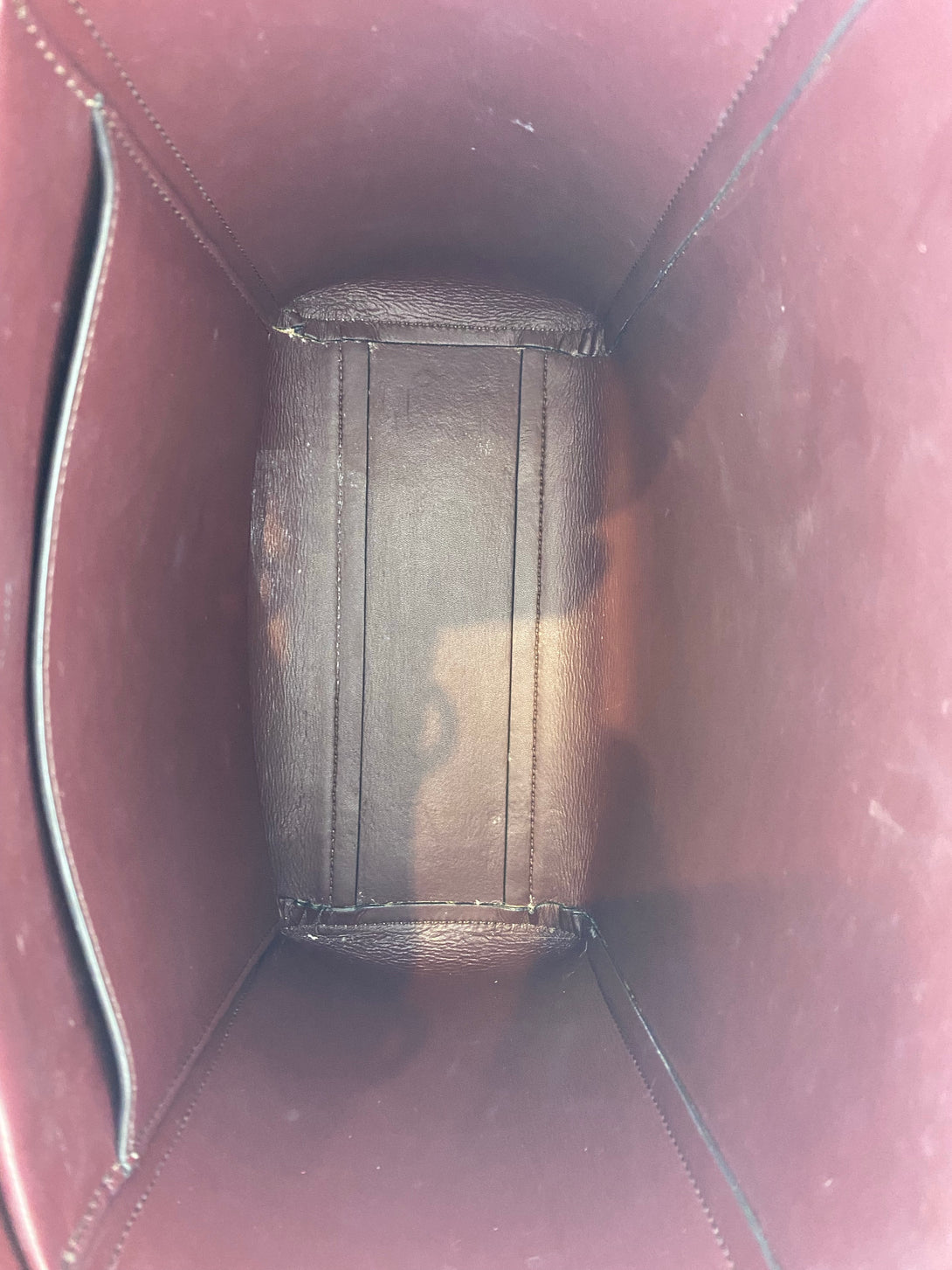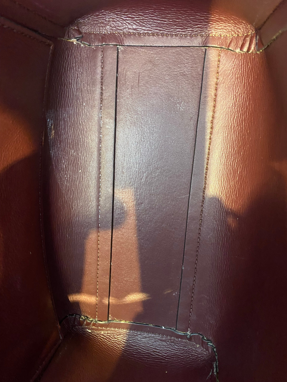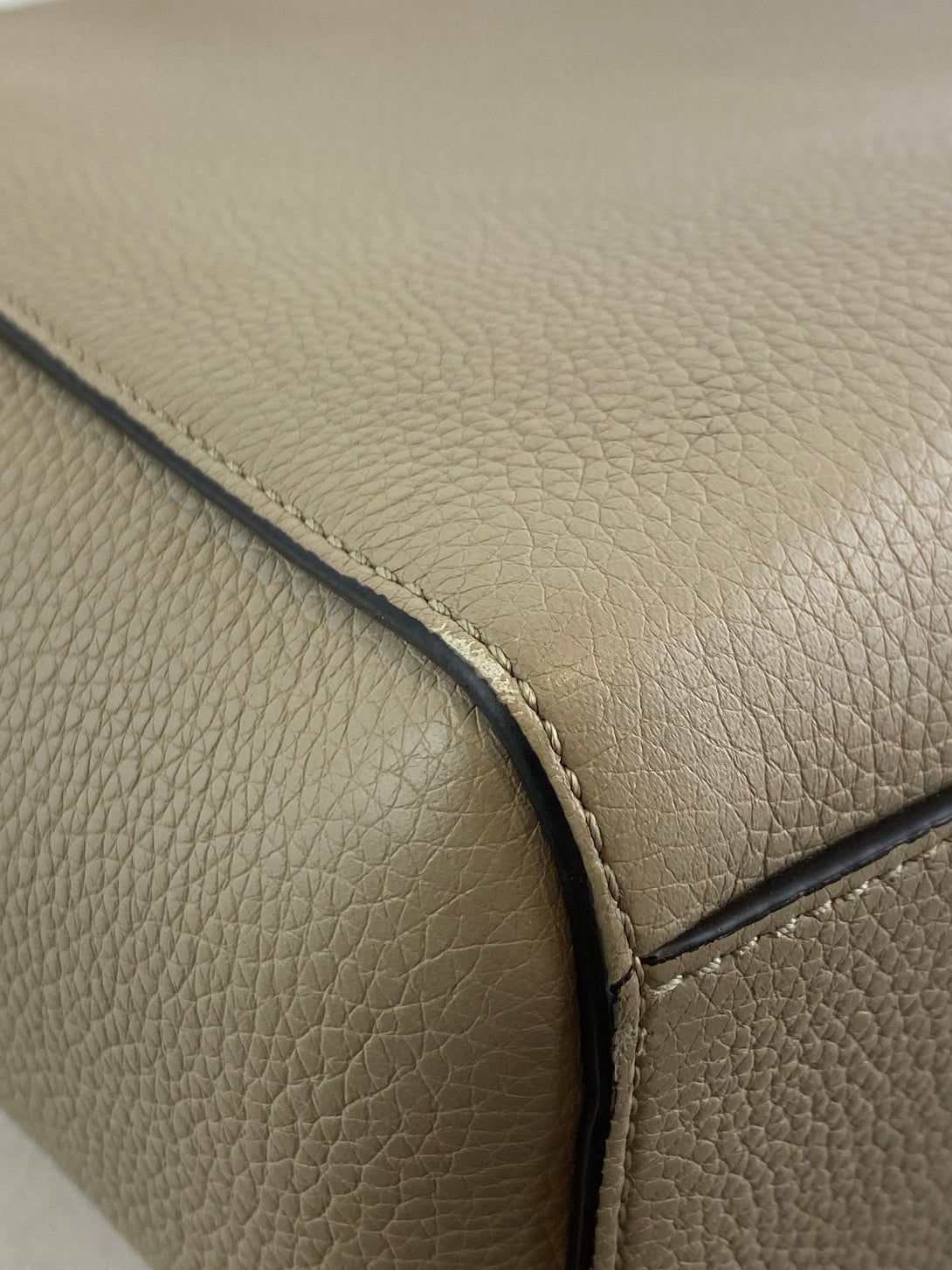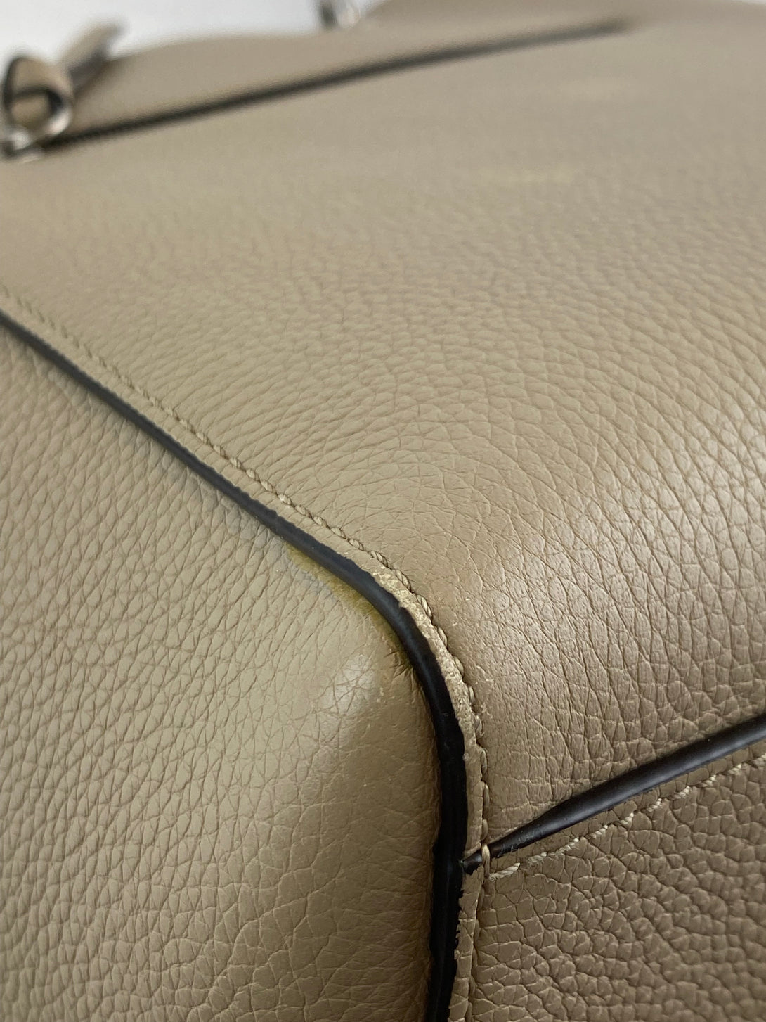 Good: Items show more prominent wear such as noticeable discoloration, stains and snags to fabric. May have worn corners and handles, tarnishing to hardware and creasing to leather. Pen or make up marks may be visible in the interior of the bag.