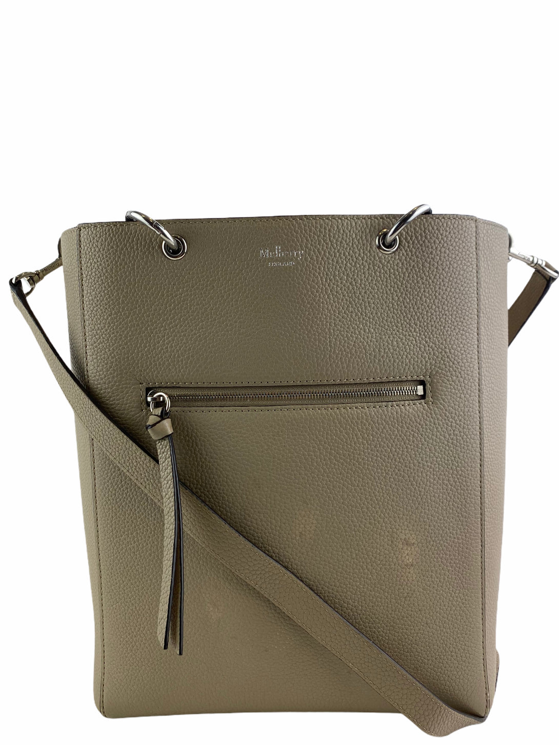Mulberry Grey Leather Bucket Bag with Crossbody Strap