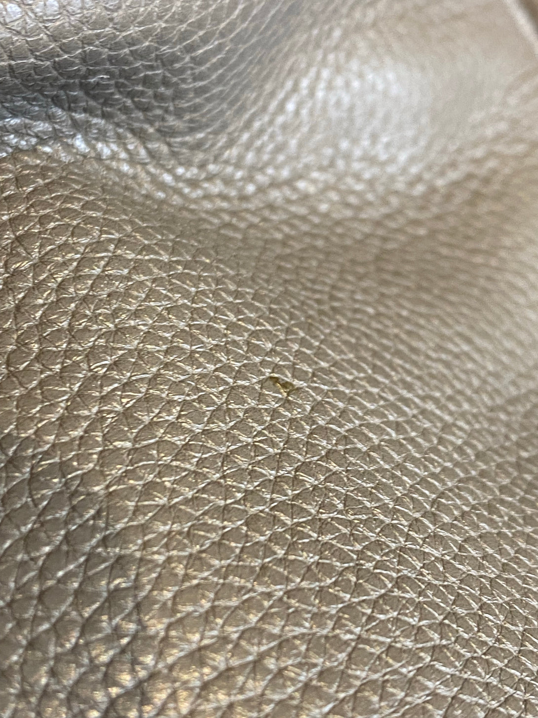 Good: Items show more prominent wear such as noticeable discoloration, stains and snags to fabric. May have worn corners and handles, tarnishing to hardware and creasing to leather. Pen or make up marks may be visible in the interior of the bag.