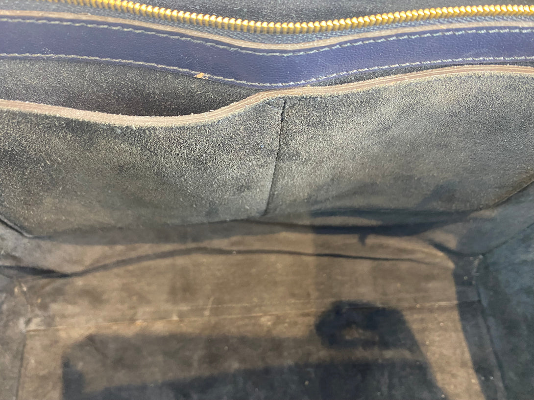 Good: Items show more prominent wear such as noticeable discoloration, stains and snags to fabric. May have worn corners and handles, tarnishing to hardware and creasing to leather. Pen or make up marks may be visible in the interior of the bag.