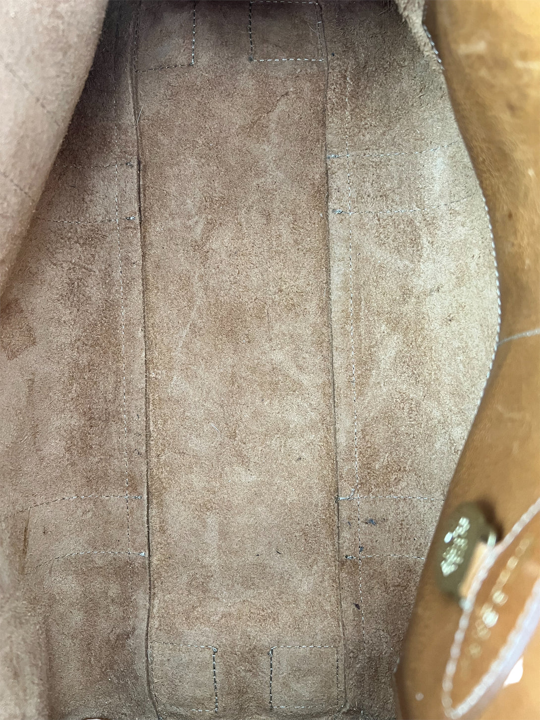 Good: Items show more prominent wear such as noticeable discoloration, stains and snags to fabric. May have worn corners and handles, tarnishing to hardware and creasing to leather. Pen or make up marks may be visible in the interior of the bag.