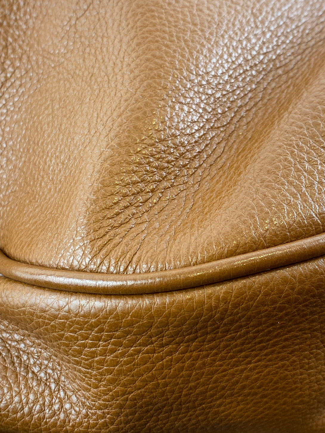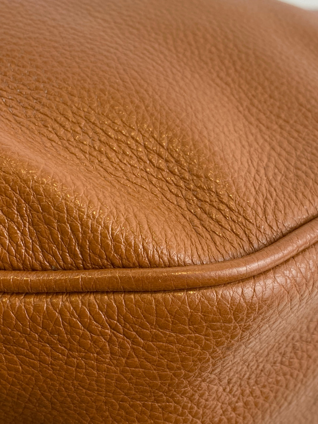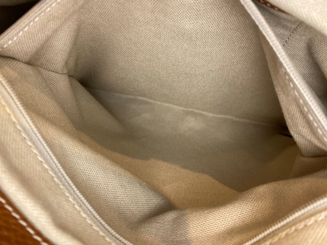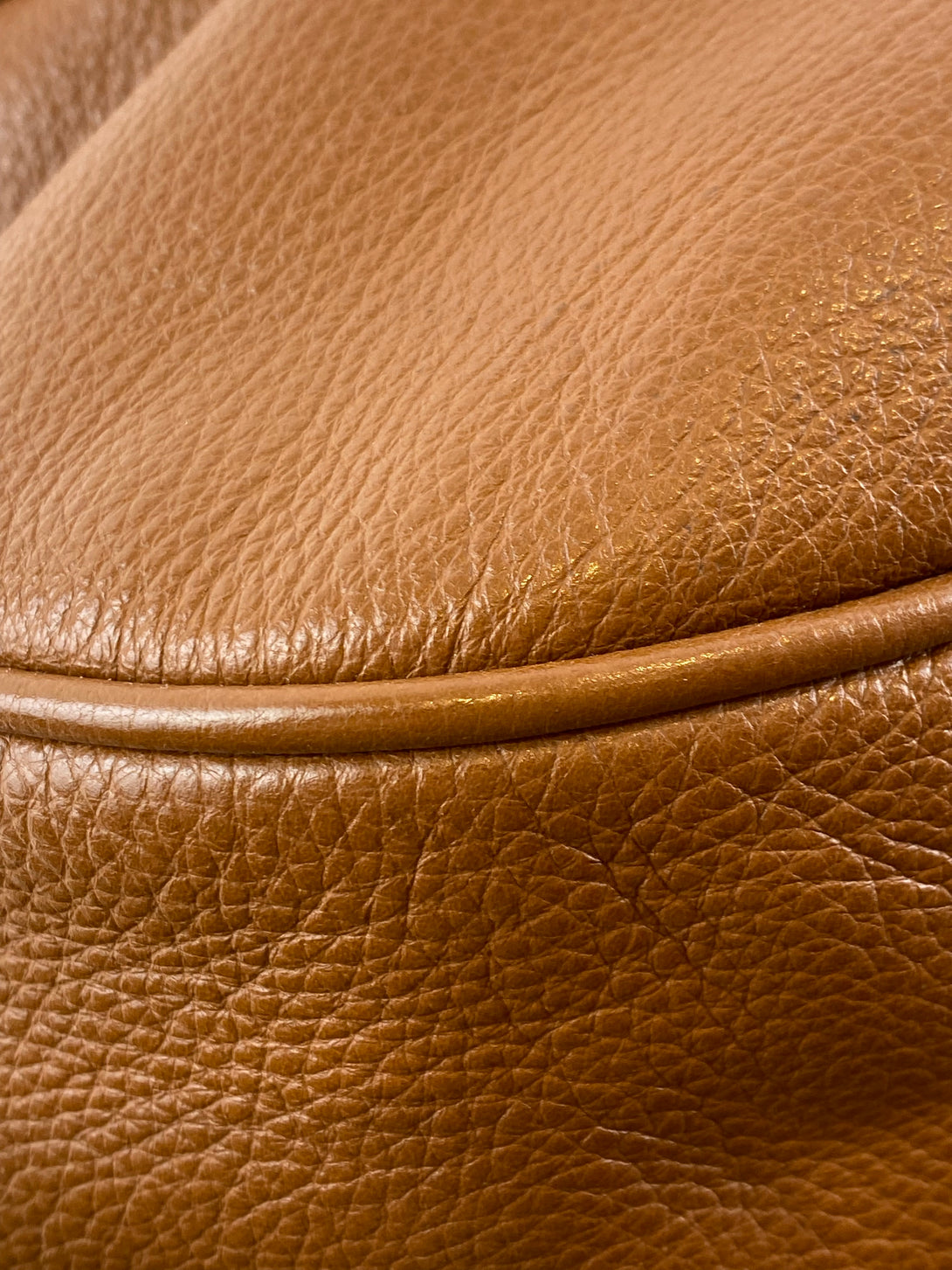 Good: Items show more prominent wear such as noticeable discoloration, stains and snags to fabric. May have worn corners and handles, tarnishing to hardware and creasing to leather. Pen or make up marks may be visible in the interior of the bag.