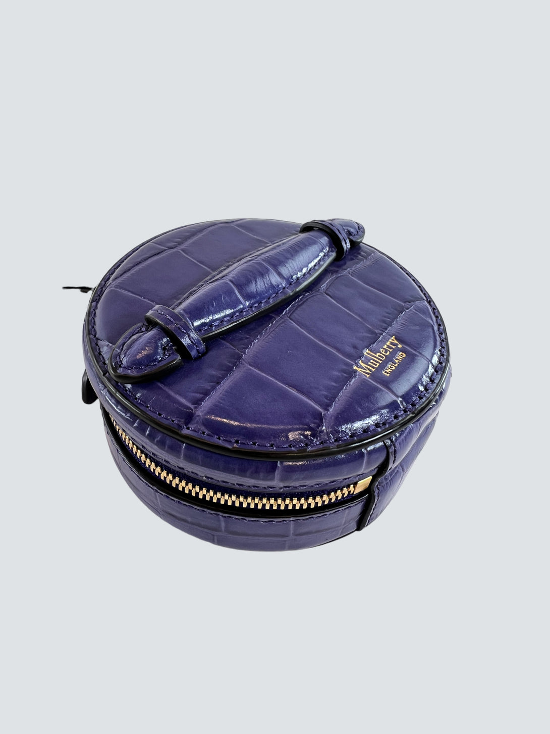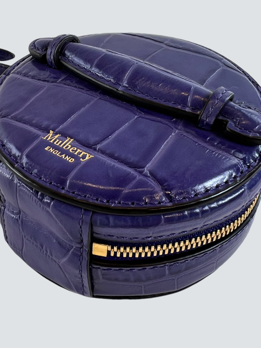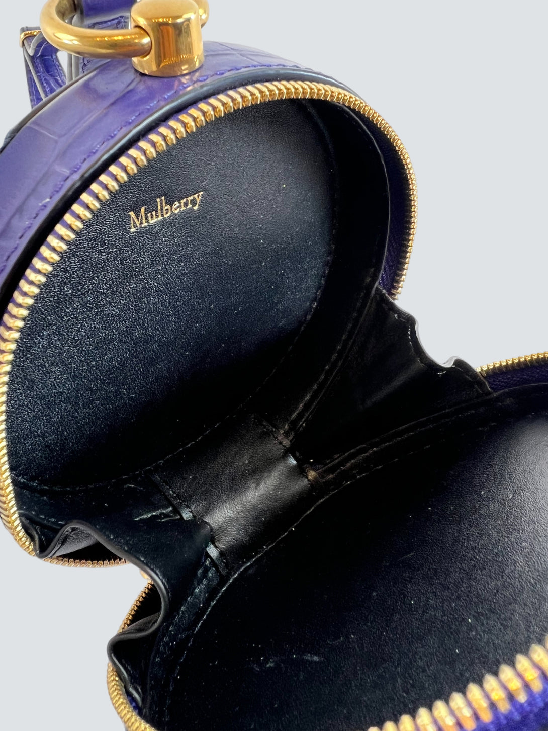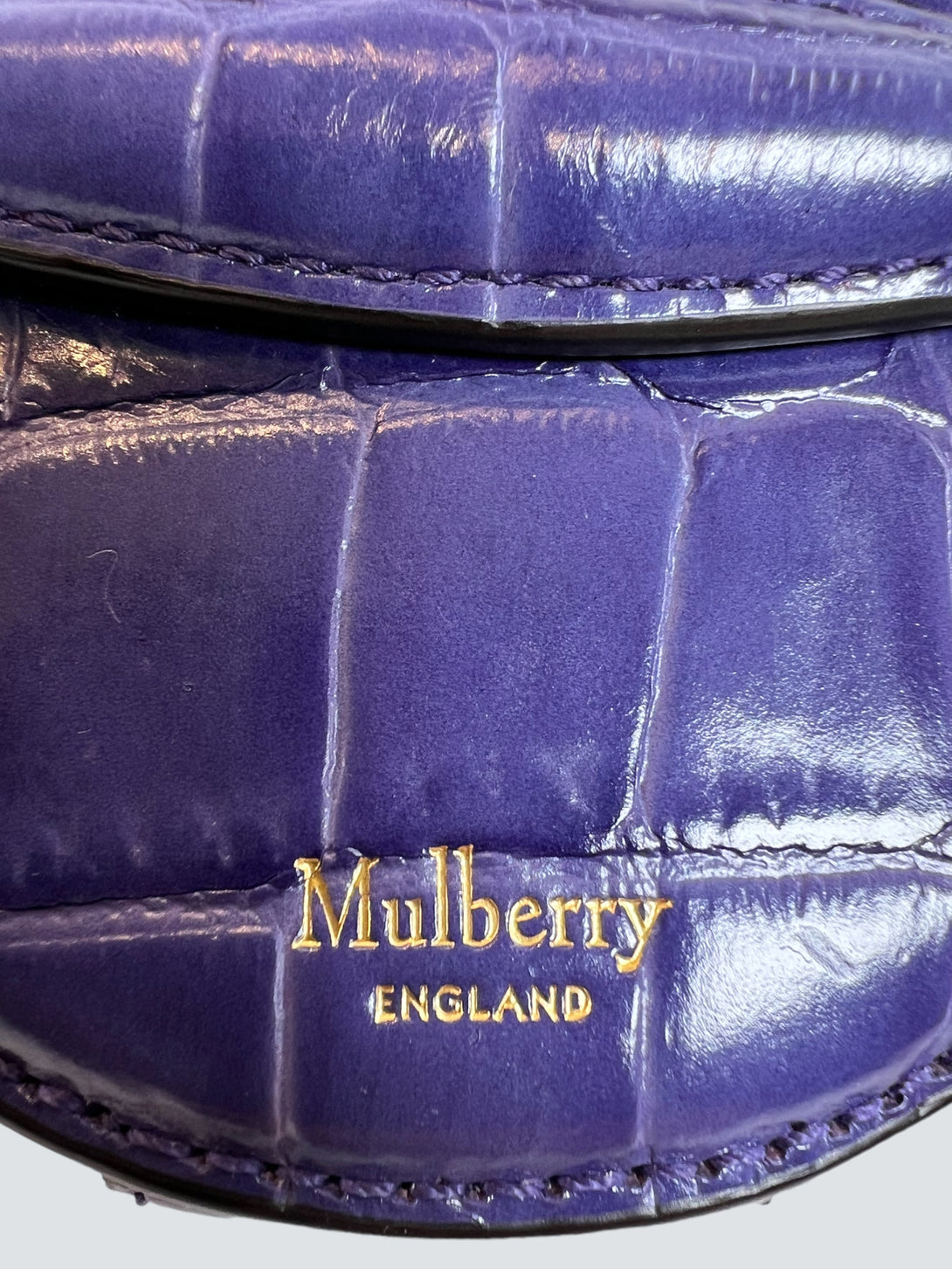 Mulberry Purple Crocodile Embossed Leather Mini Trunk Wristlet