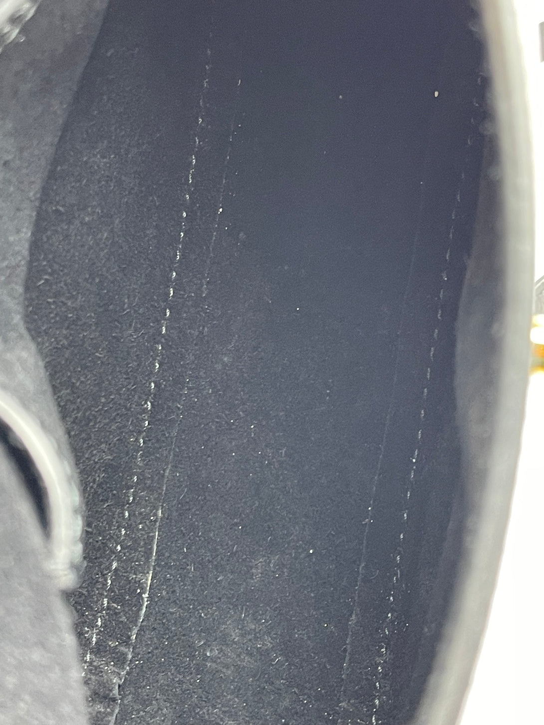 Good: Items show more prominent wear such as noticeable discoloration, stains and snags to fabric. May have worn corners and handles, tarnishing to hardware and creasing to leather. Pen or make up marks may be visible in the interior of the bag.