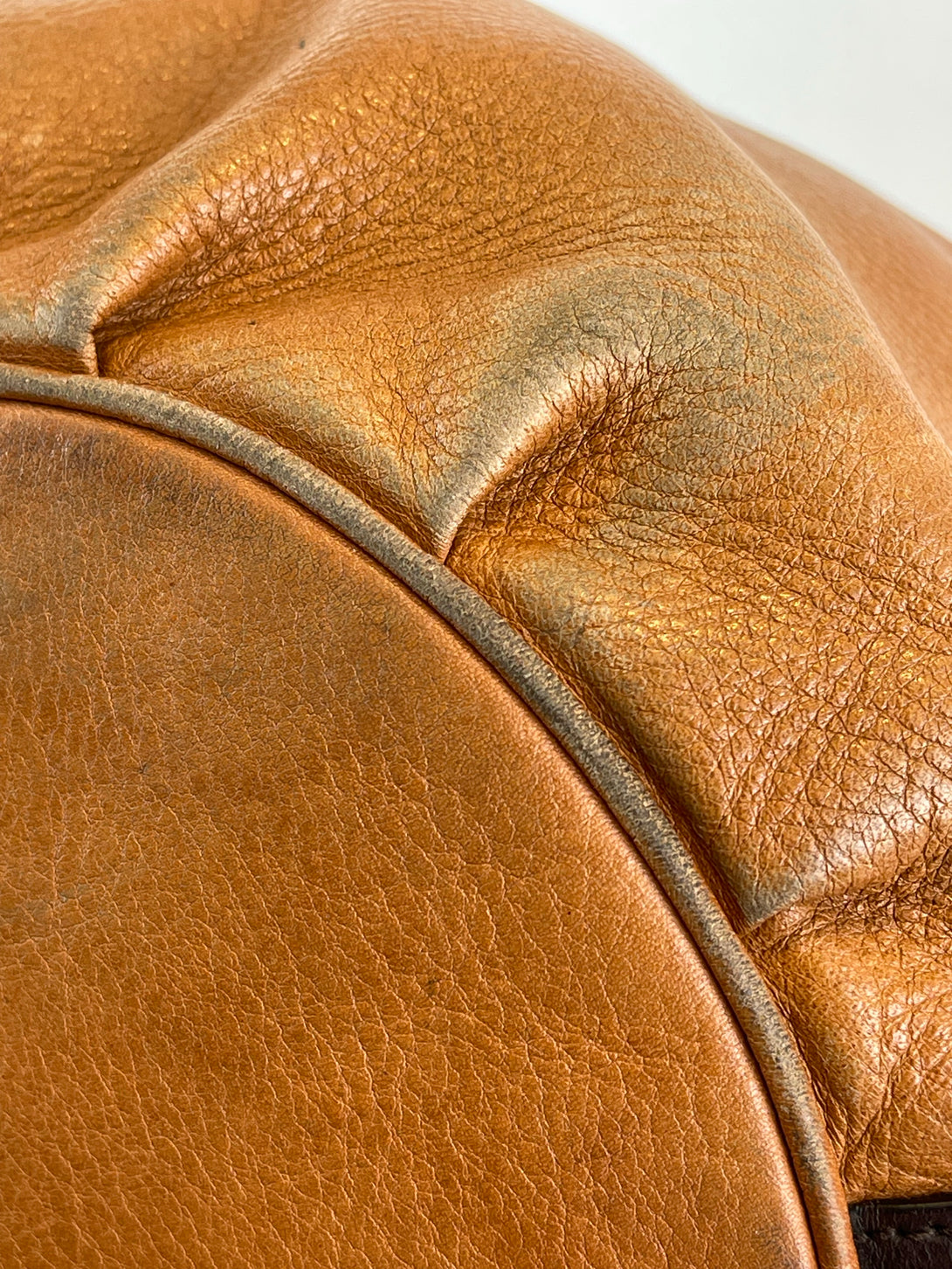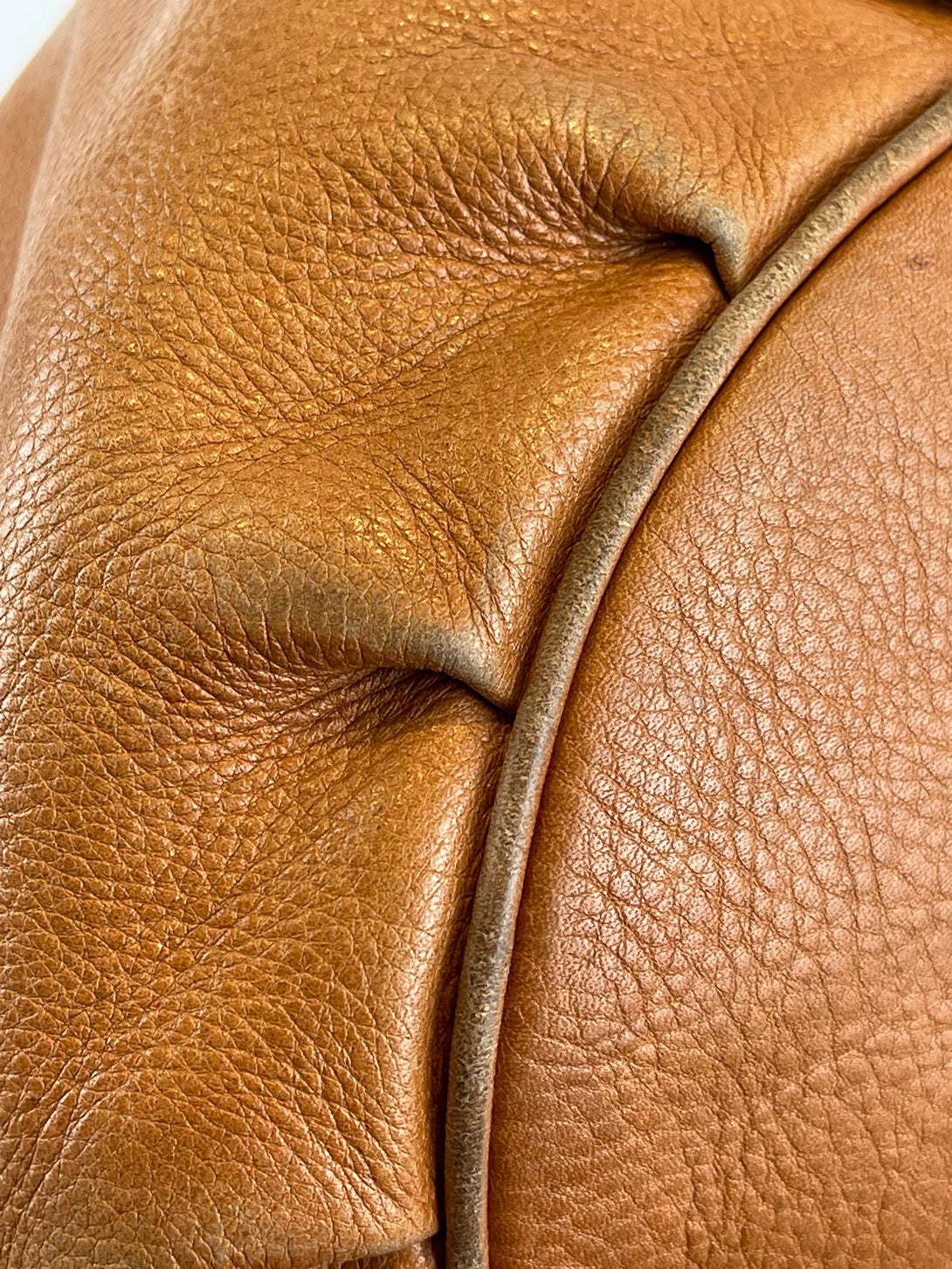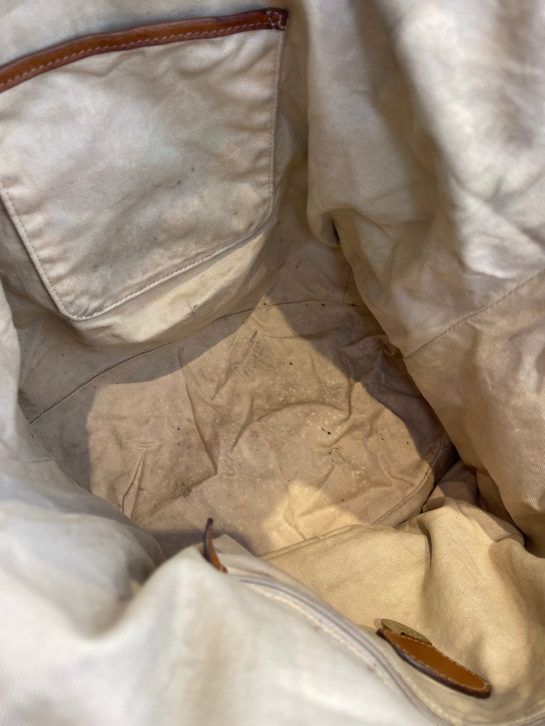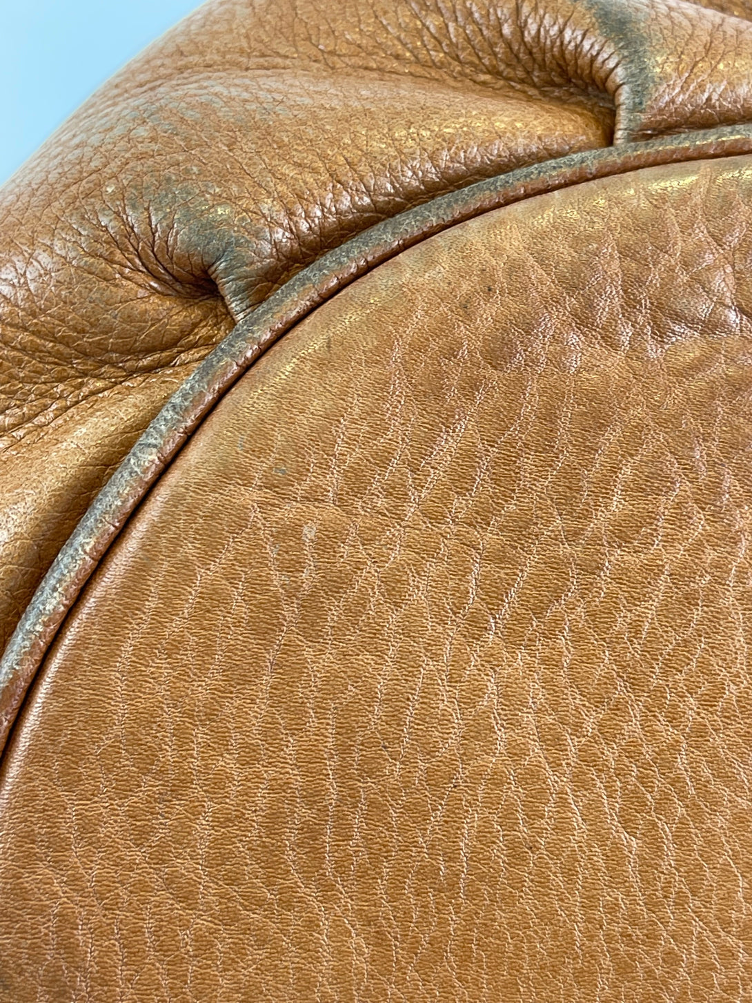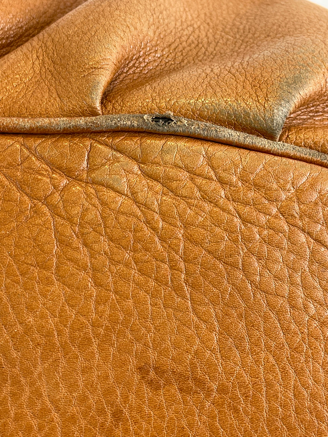 Good: Items show more prominent wear such as noticeable discoloration, stains and snags to fabric. May have worn corners and handles, tarnishing to hardware and creasing to leather. Pen or make up marks may be visible in the interior of the bag.
