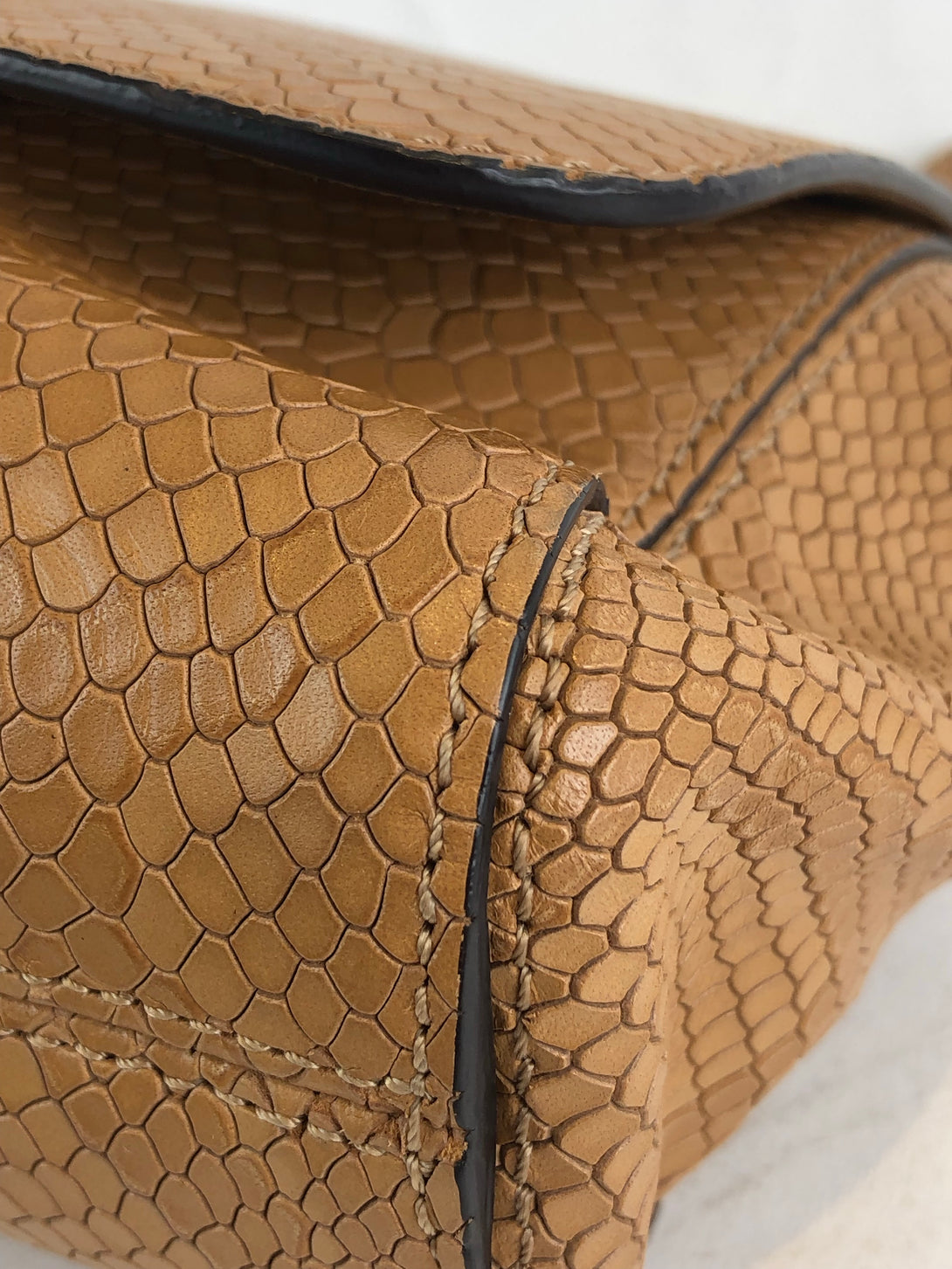 Fair: Very prominent wear, may have holes on corners, severe scuffs, piping of bag showing and pen marks to exterior. Interior may have pen or make up marks.