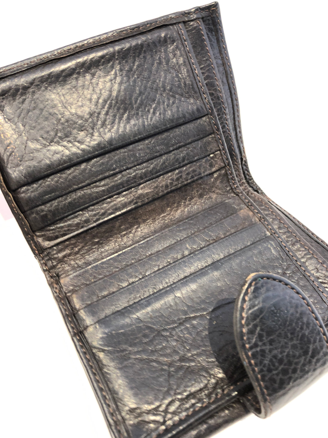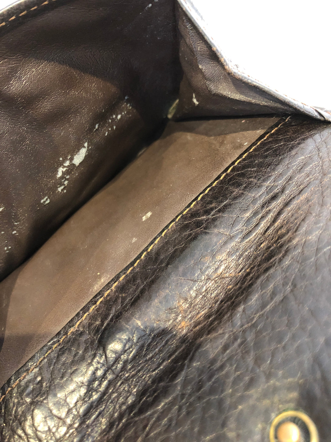 Good: Items show more prominent wear such as noticeable discoloration, stains and snags to fabric. May have worn corners and handles, tarnishing to hardware and creasing to leather. Pen or make up marks may be visible in the interior of the bag.