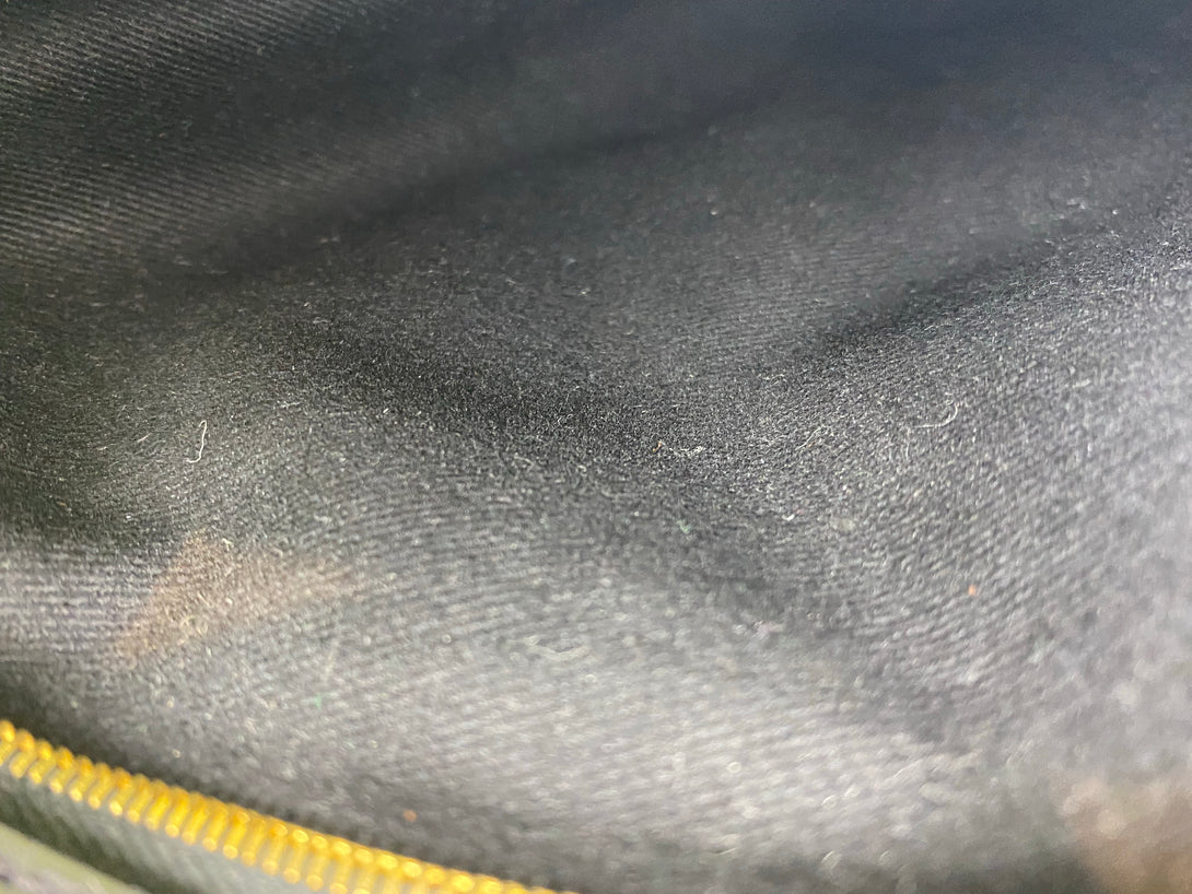 Good: Items show more prominent wear such as noticeable discoloration, stains and snags to fabric. May have worn corners and handles, tarnishing to hardware and creasing to leather. Pen or make up marks may be visible in the interior of the bag.