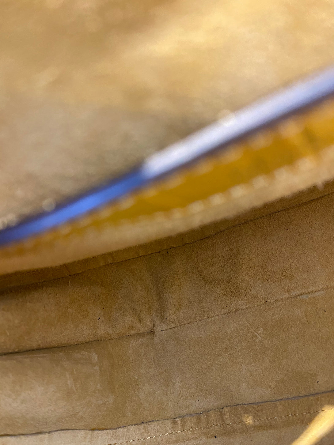Very Good: Light to moderate visible signs of use. Items may have slightly worn corners, minor scuffs or tarnishing to hardware, lightening to fabric, or small stains and snags. Shoes may have scuffing to soles.