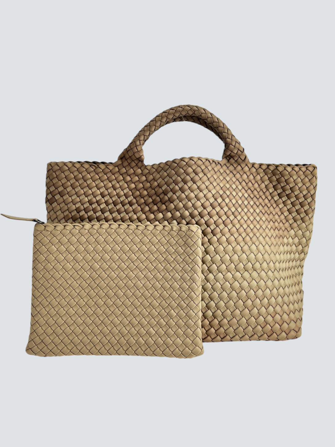 Naghedi Chalk Woven Neoprene "St. Barths" Medium Tote