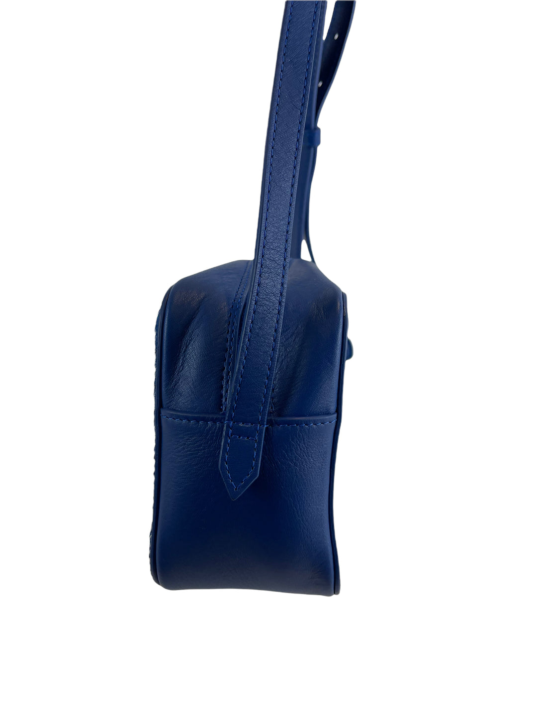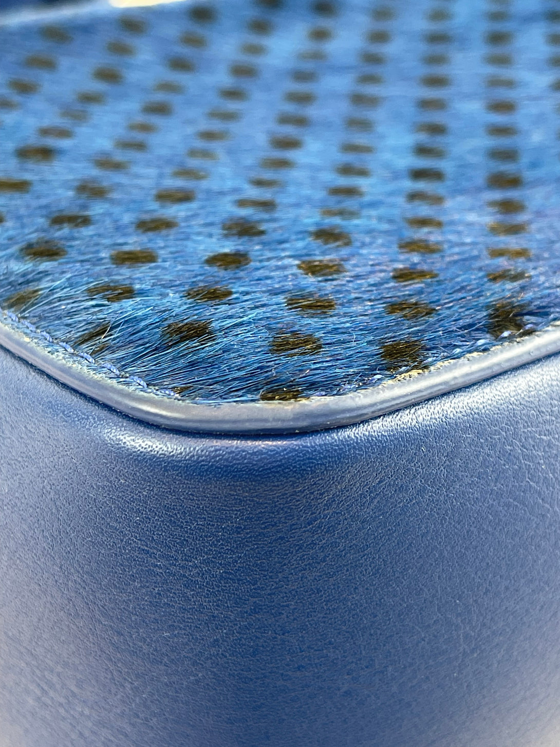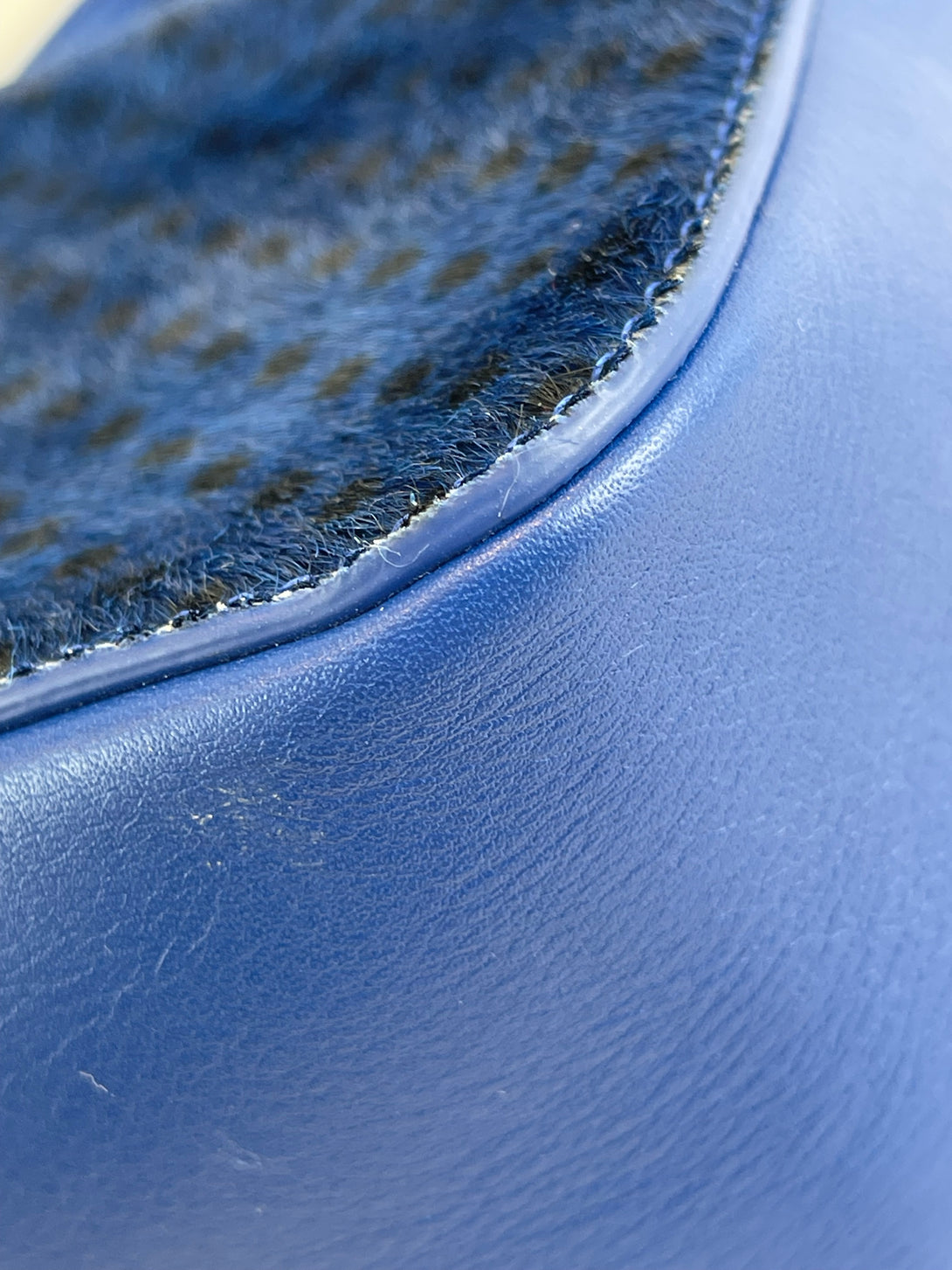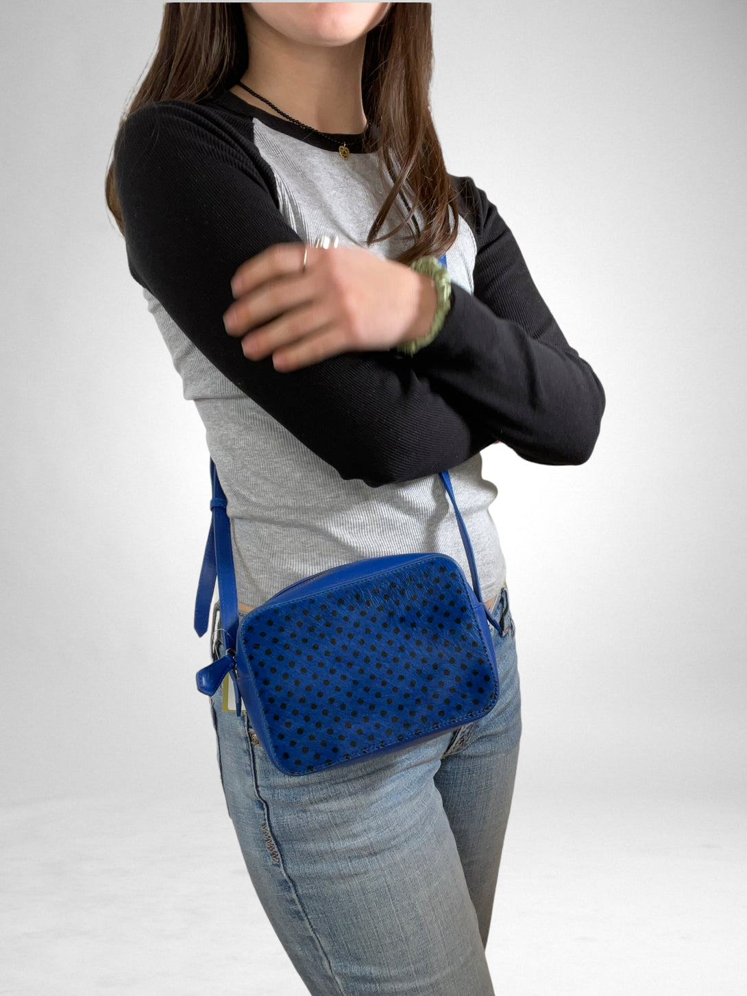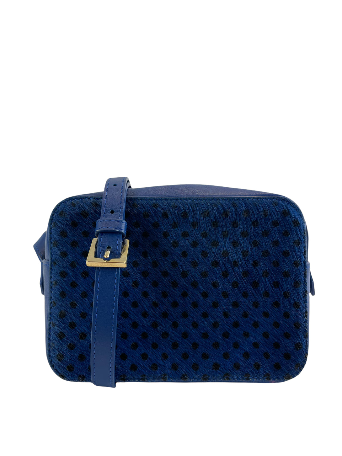 Nicki Hoyne Blue Leather & Polka Dot Pony Hair Camera Crossbody