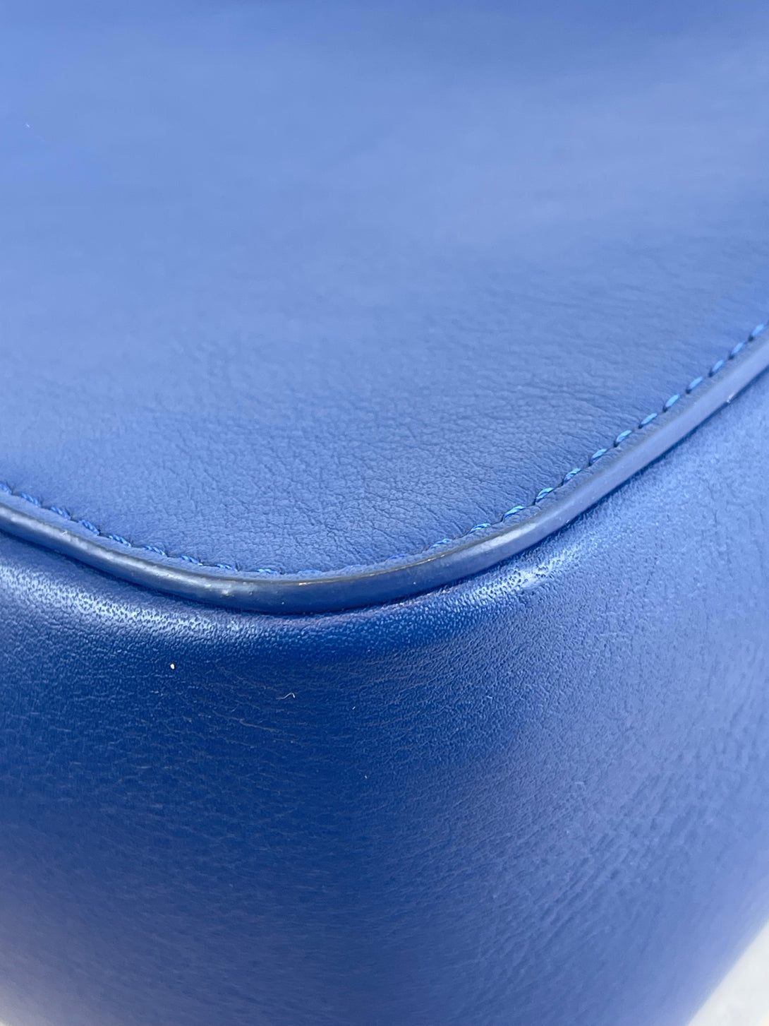 Good: Items show more prominent wear such as noticeable discoloration, stains and snags to fabric. May have worn corners and handles, tarnishing to hardware and creasing to leather. Pen or make up marks may be visible in the interior of the bag.