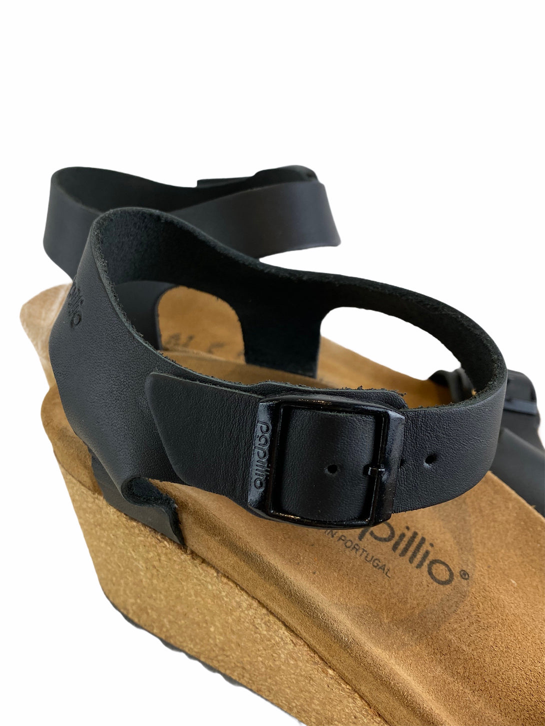 - Black buckled wedges