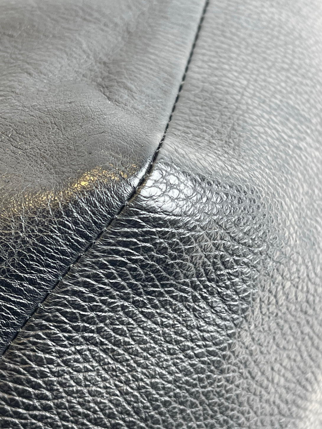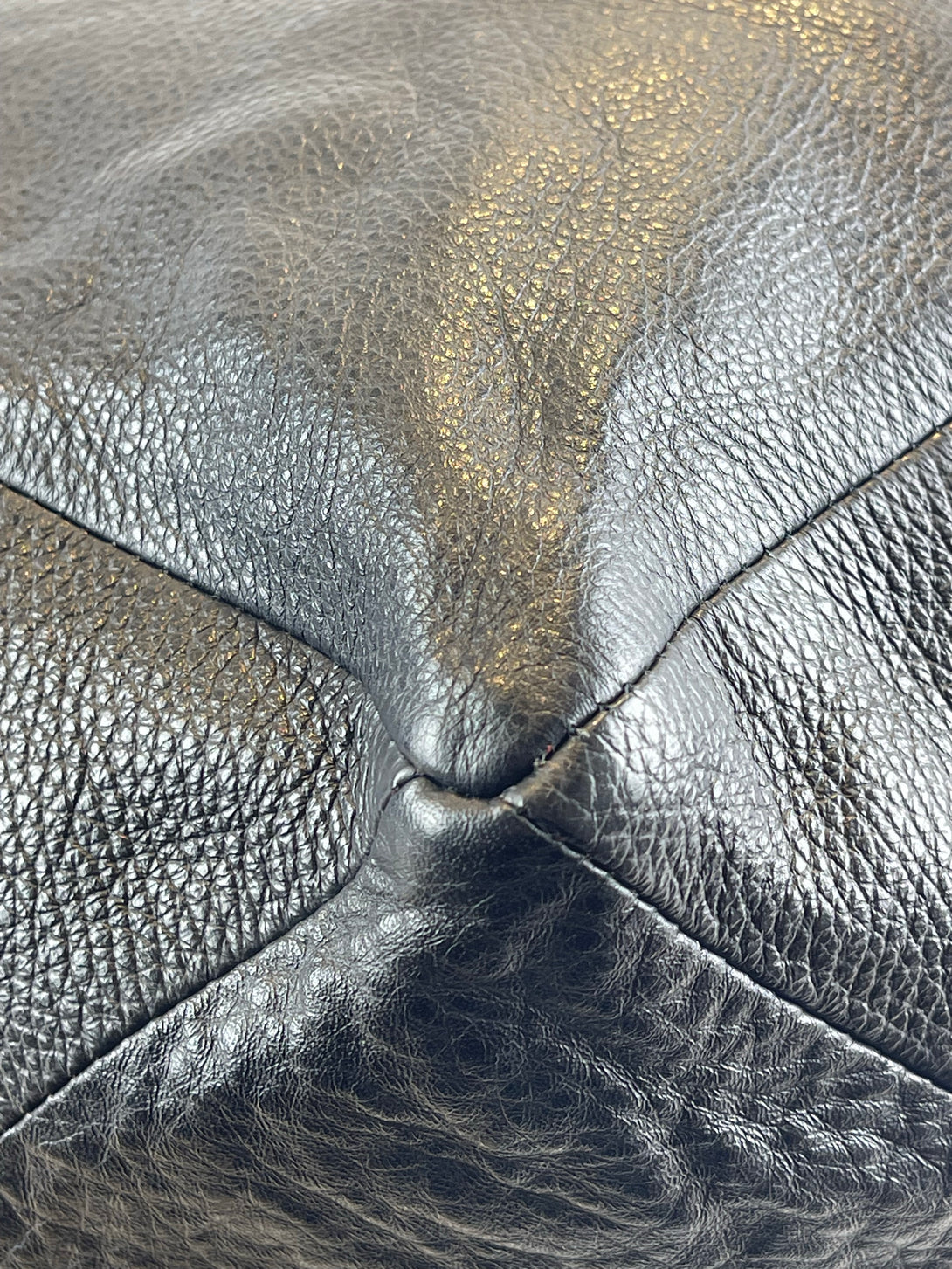 Good: Items show more prominent wear such as noticeable discoloration, stains and snags to fabric. May have worn corners and handles, tarnishing to hardware and creasing to leather. Pen or make up marks may be visible in the interior of the bag.