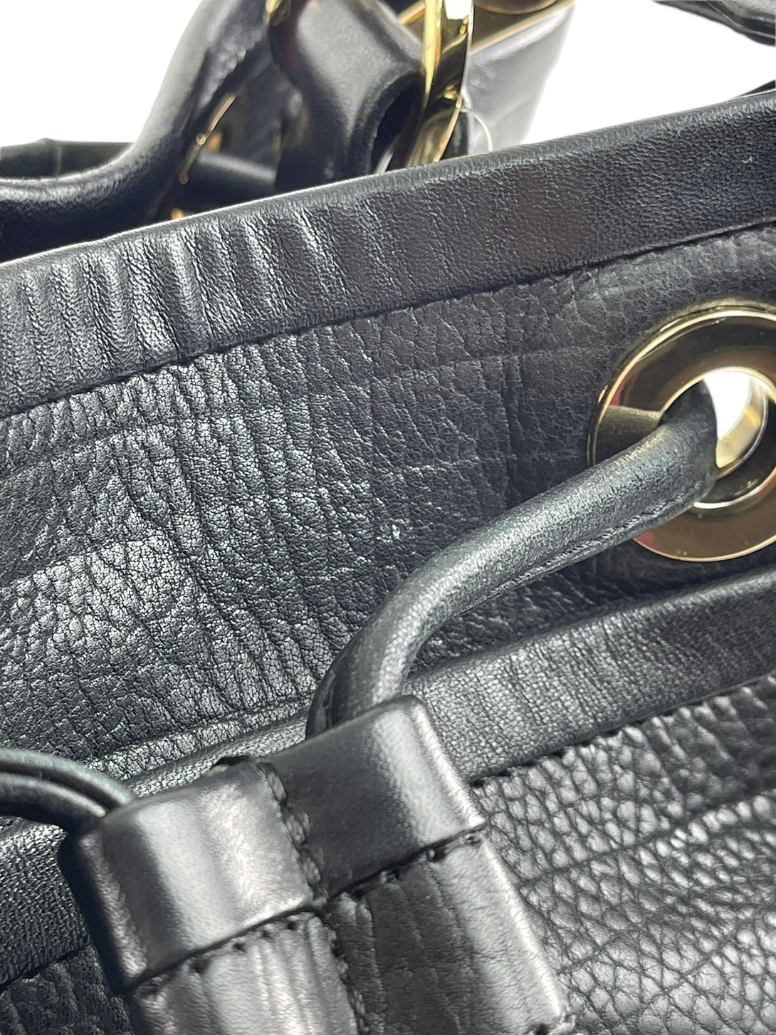 Fair: Very prominent wear, may have holes on corners, severe scuffs, piping of bag showing and pen marks to exterior. Interior may have pen or make up marks.