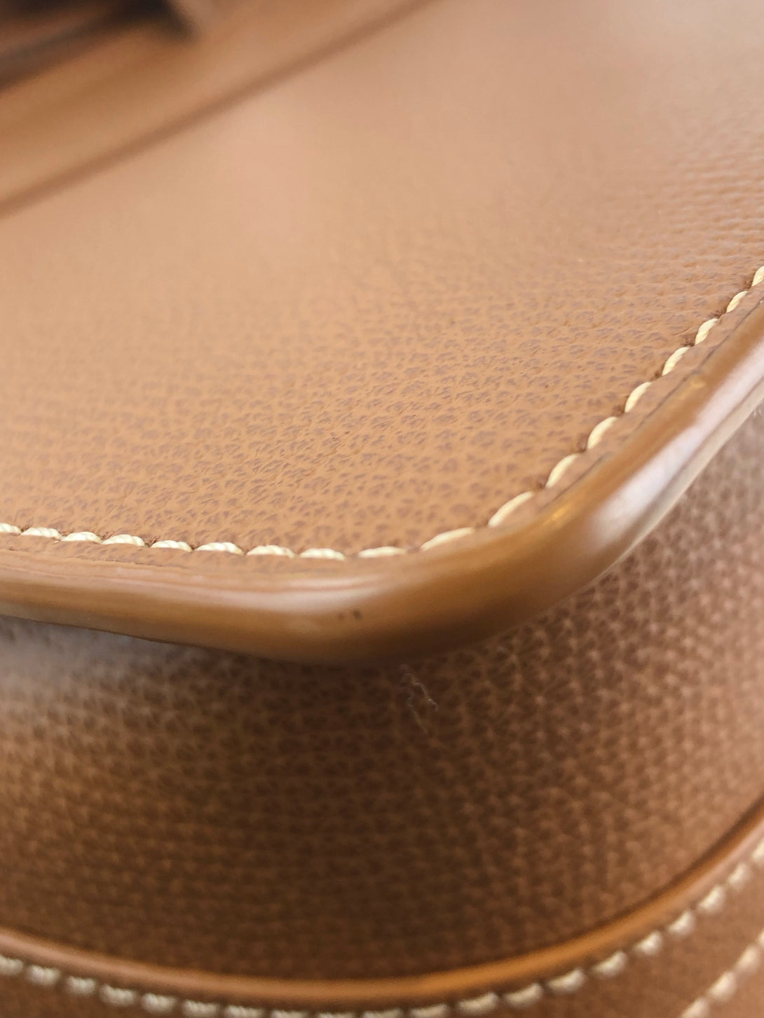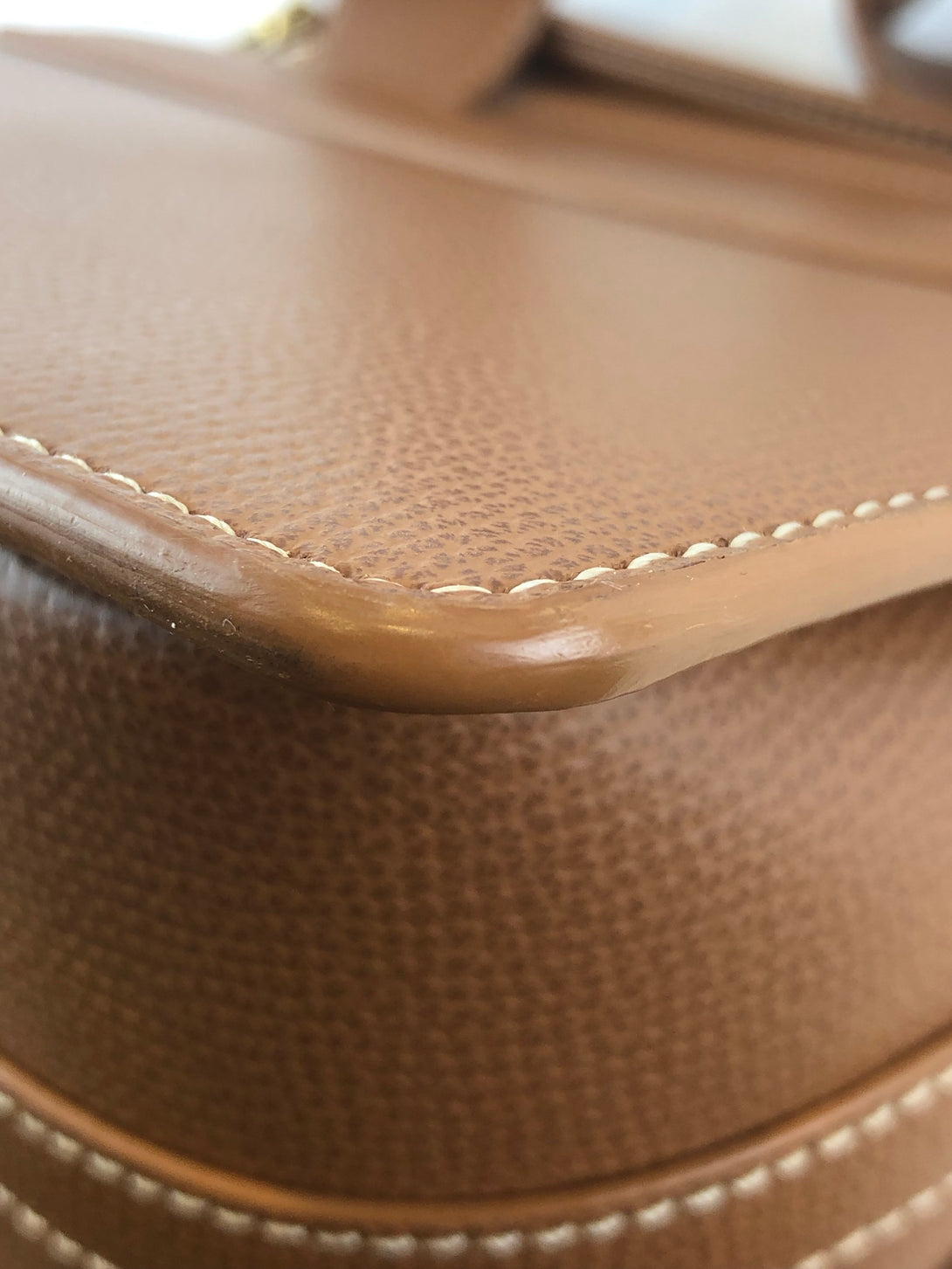 Fair: Very prominent wear, may have holes on corners, severe scuffs, piping of bag showing and pen marks to exterior. Interior may have pen or make up marks.