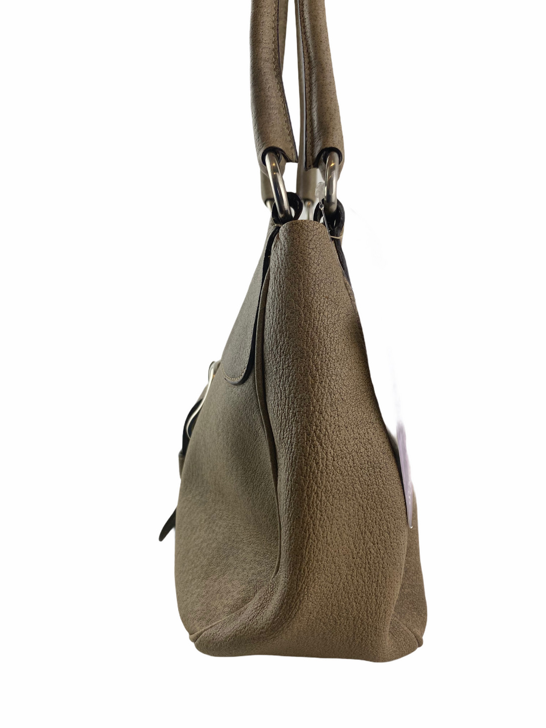 Good: Items show more prominent wear such as noticeable discoloration, stains and snags to fabric. May have worn corners and handles, tarnishing to hardware and creasing to leather. Pen or make up marks may be visible in the interior of the bag.